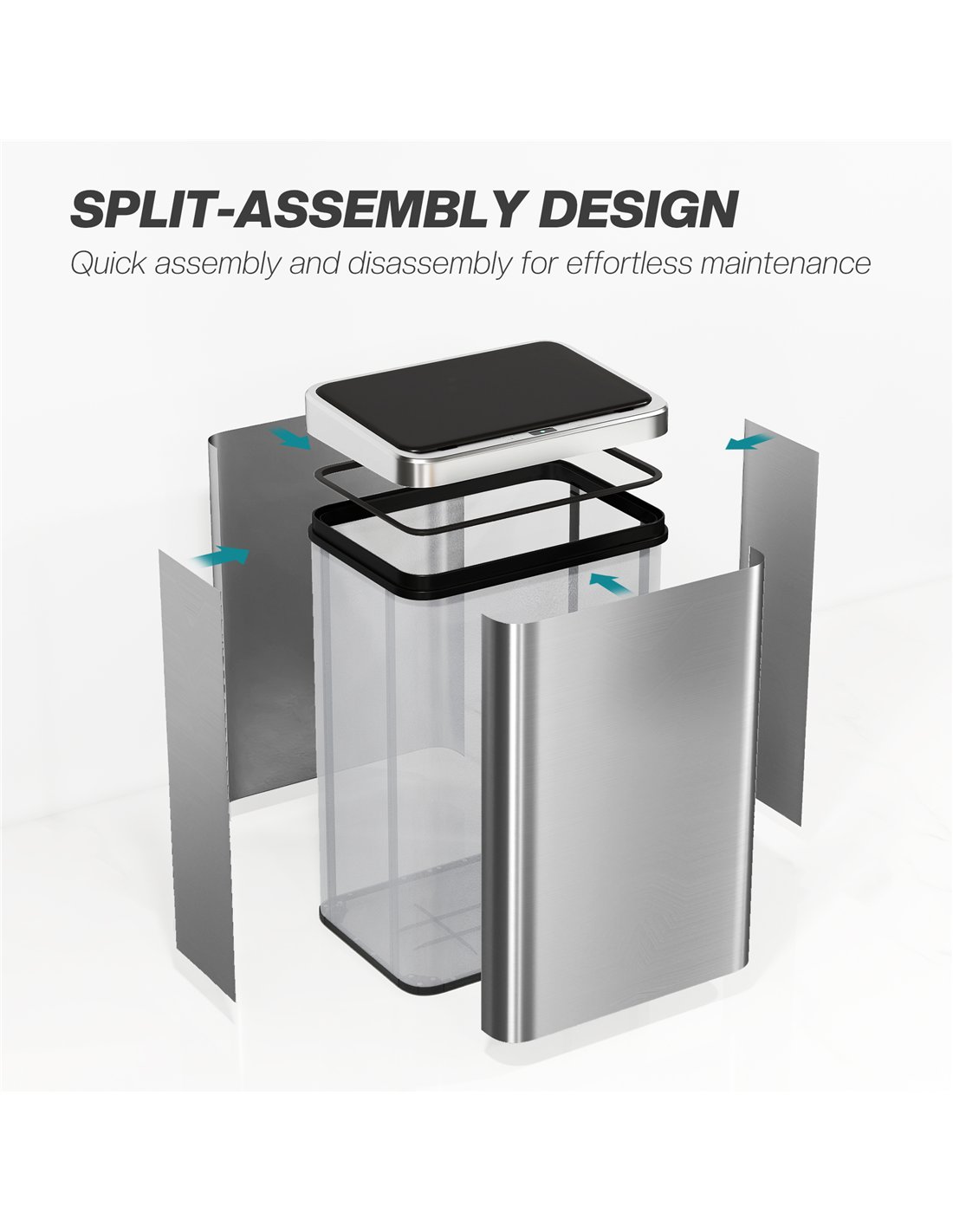 - A: The bin is crafted from fingerprint-resistant stainless steel for easy maintenance. Its fully detachable design allows for thorough washing, ensuring complete hygiene.