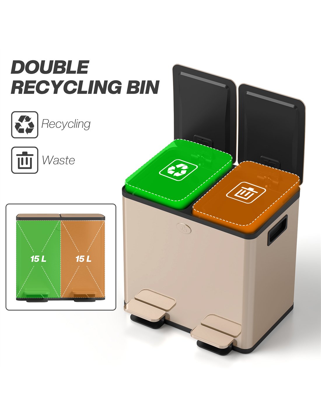 - 2 x 15L capacity: dual bin holds plenty and can separate items however you need