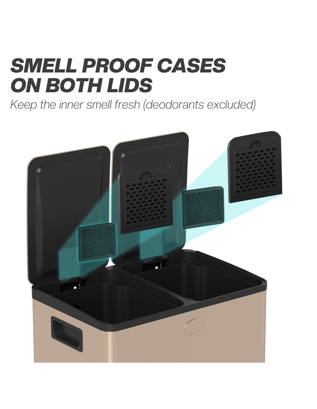 HOMCOM 30L Dual Compartment Stainless Steel Bin, with Deodoriser Holders - Gold Tone