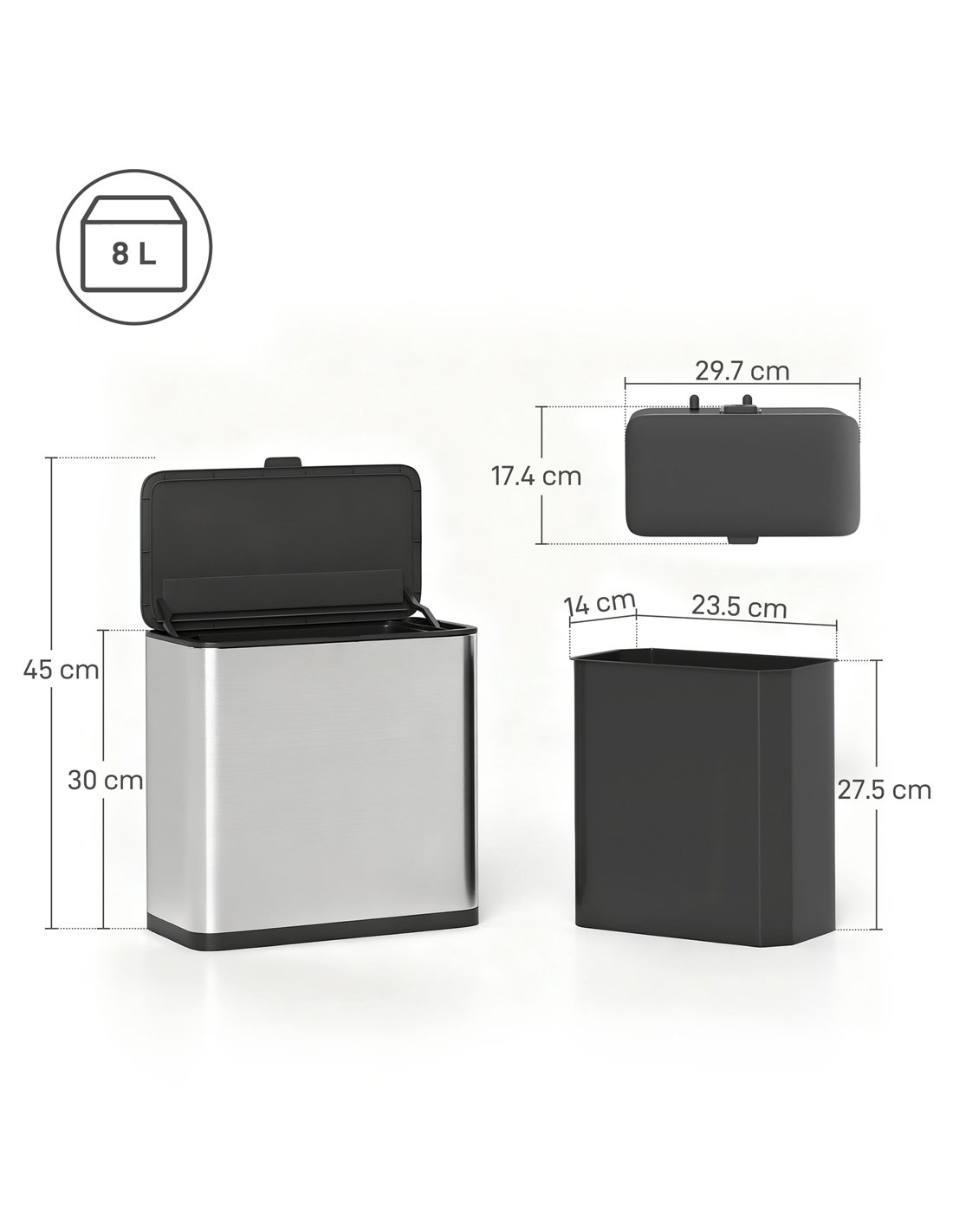 - Compact 8 L bin fits perfectly in kitchens, offices, bedrooms, study rooms, or other small spaces