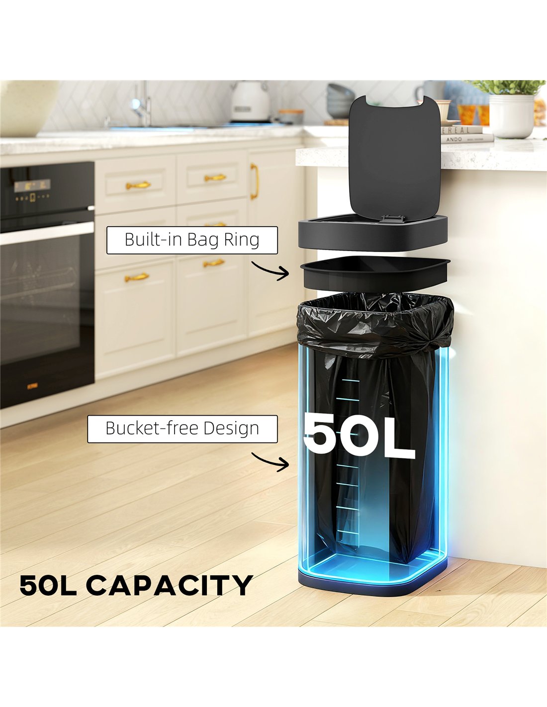 HOMCOM 50L Sensor Bin, Automatic Kitchen Bin, Manual Override, Battery Operated, Inner-Bucket-Free, for Kitchen, Bedroom