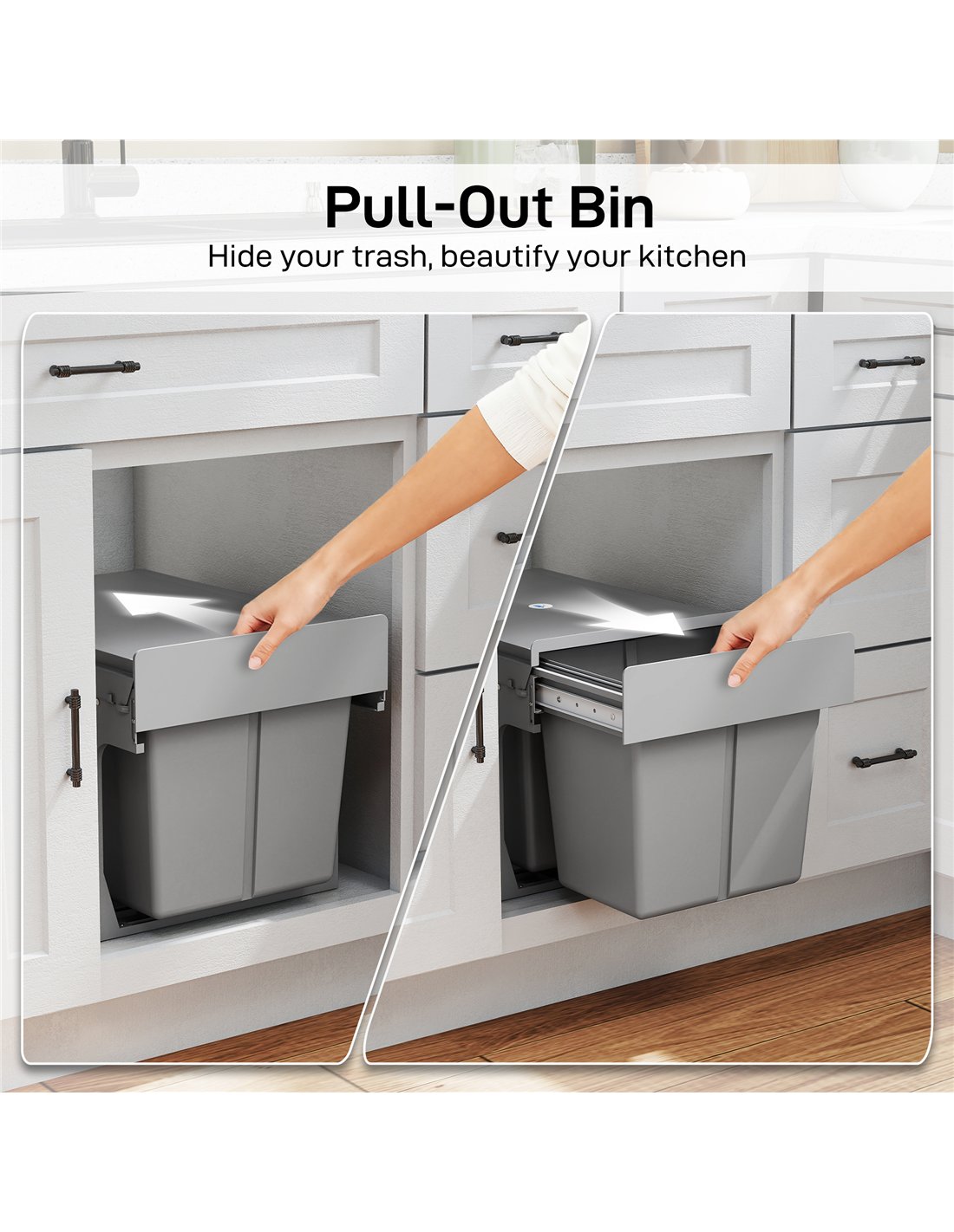 HOMCOM Pull Out Bin, Under Sink Bin - 2 Removable Compartments (15L Each) for 400mm Cabinets, Light Grey
