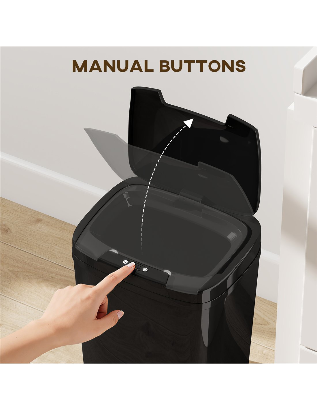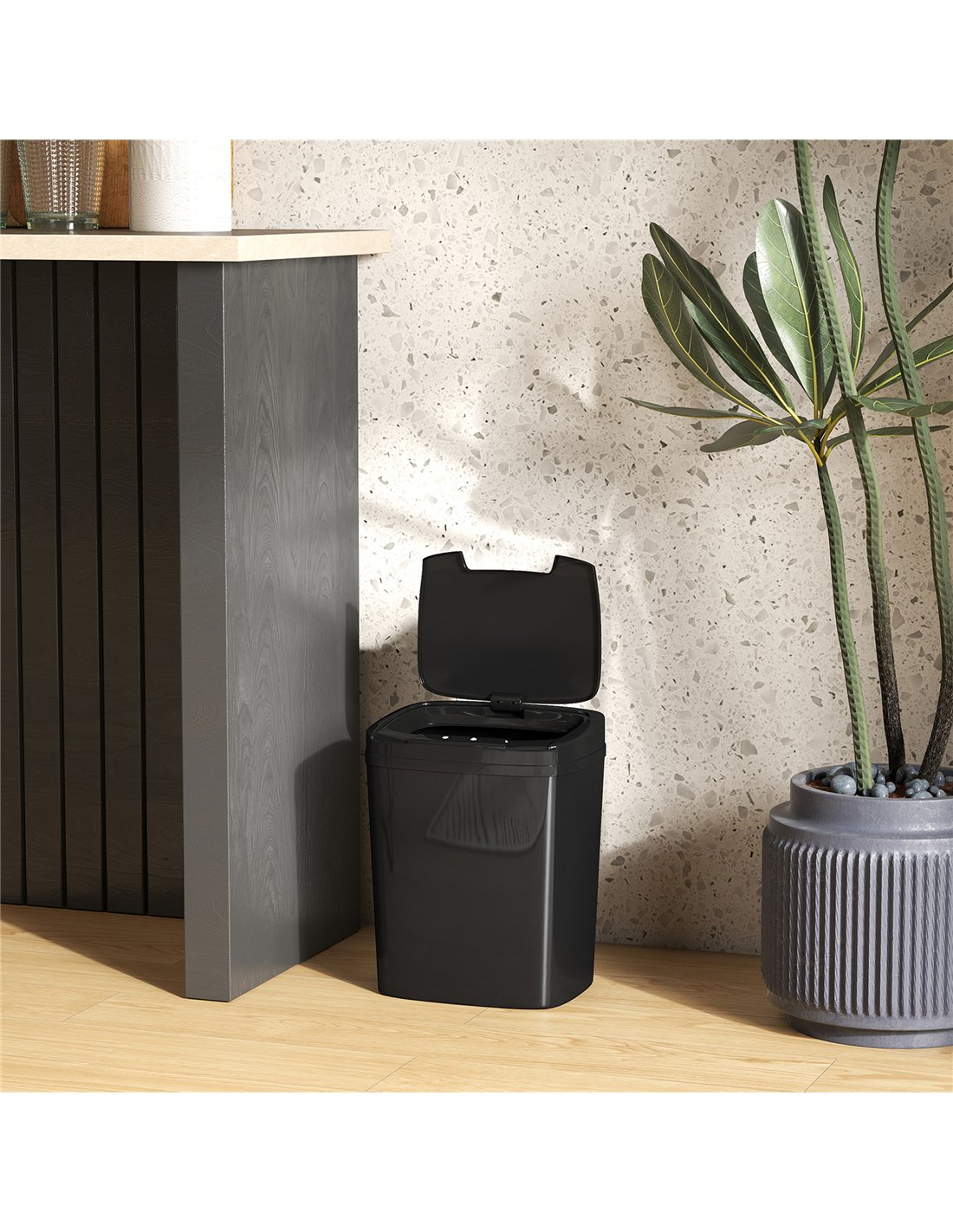 HOMCOM 15L Sensor Bin, Automatic Touchless Kitchen Bin, Easy Clean, Battery Operated for Home Office, Bedroom, Bathroom, Black