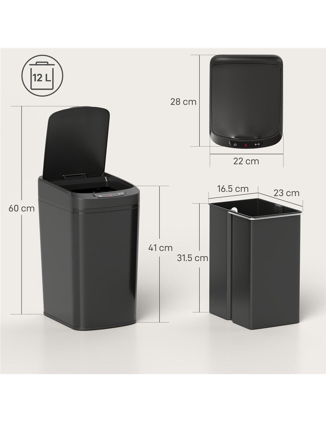 The HOMCOM 12L Sensor Bin delivers a hygienic and effortless waste management solution for your UK home. This automatic touchless motion sensor kitchen bin features a durable, fingerprint-resistant stainless steel body in black, maintaining a pristine appearance. Its 12-litre capacity accommodates daily family waste disposal, integrating smoothly into contemporary kitchens. Enjoy hands-free operation with infrared sensing, opening the lid within 0.5 seconds. A manual touch button provides direct control over the lid. The bin's compact design fits easily into modern spaces without compromising capacity. A removable inner bucket simplifies emptying and cleaning. The integrated bag-retainer ring keeps liners out of sight, ensuring a tidy kitchen aesthetic. This bin prioritises comfort, offering a 60 cm opening height to minimise bending during waste disposal.