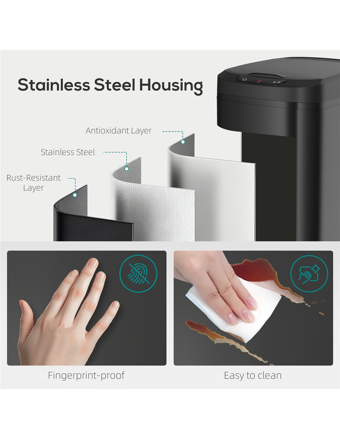 - Infrared sensing opens the lid hands-free within 0.5 seconds