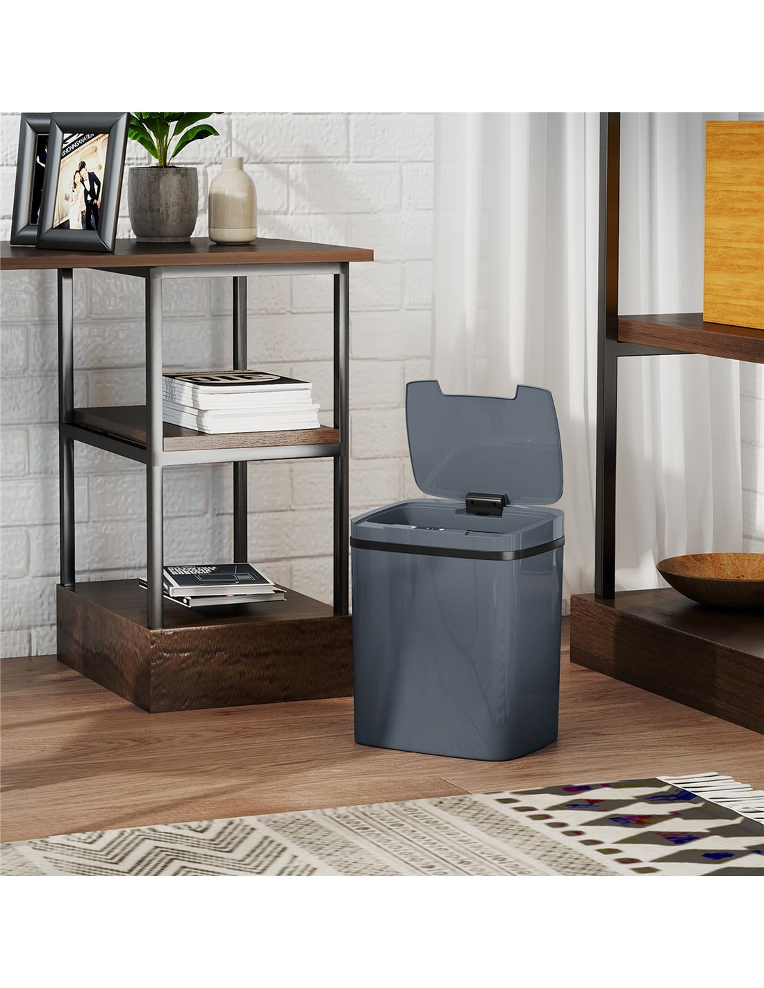 - A: The bin features hygienic, touch-free operation with motion-sensing automatic opening, activating when your hand is 15-20 cm away for 0.5 seconds. For longer access, switch to manual mode, which holds the lid open for 5 seconds.