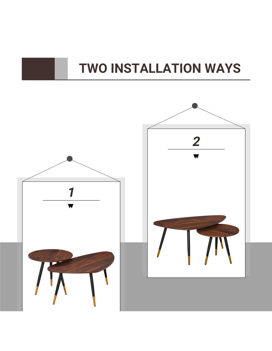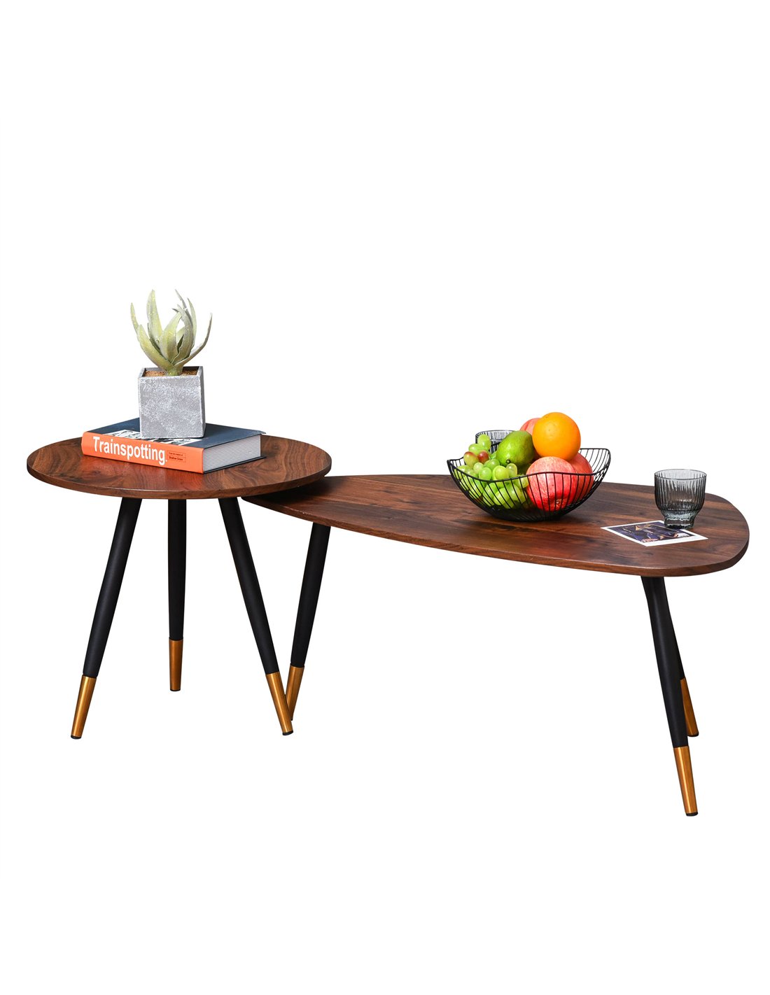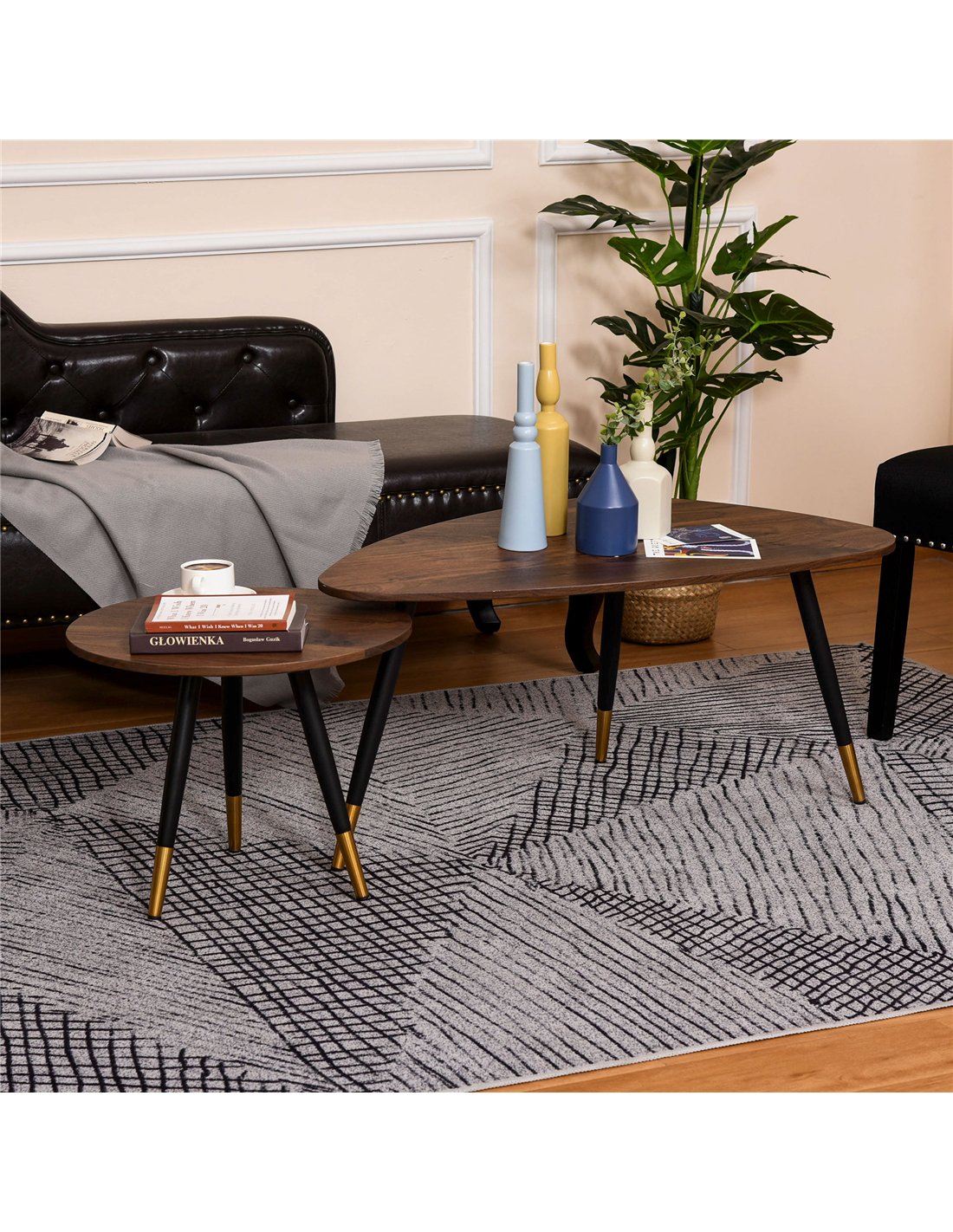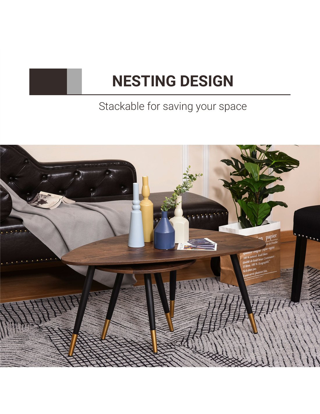Enhance your home style with this HOMCOM coffee table set. Set comes with a small and large table - both can be combined for extended space or left separated. There are three steel legs on each piece, keeping the tables balanced and steady, with wood effect markings for a natural look. The table tops, made from robust MDF, with its walnut colour finish - a modern Scandinavian style set.