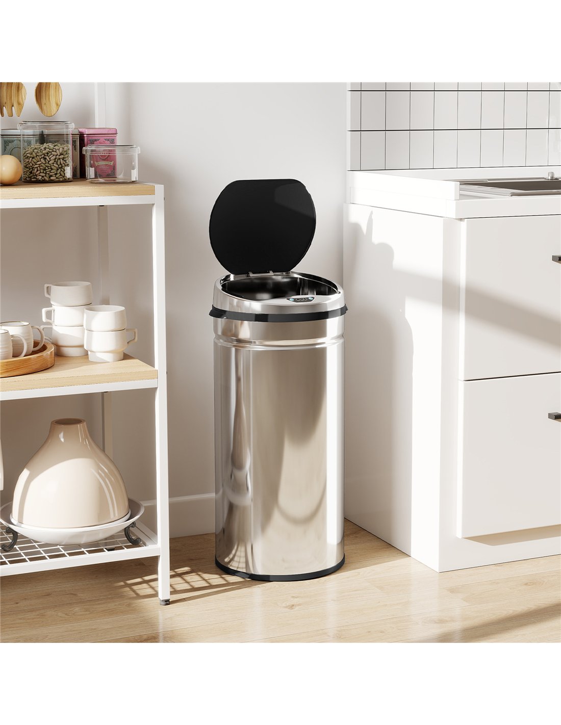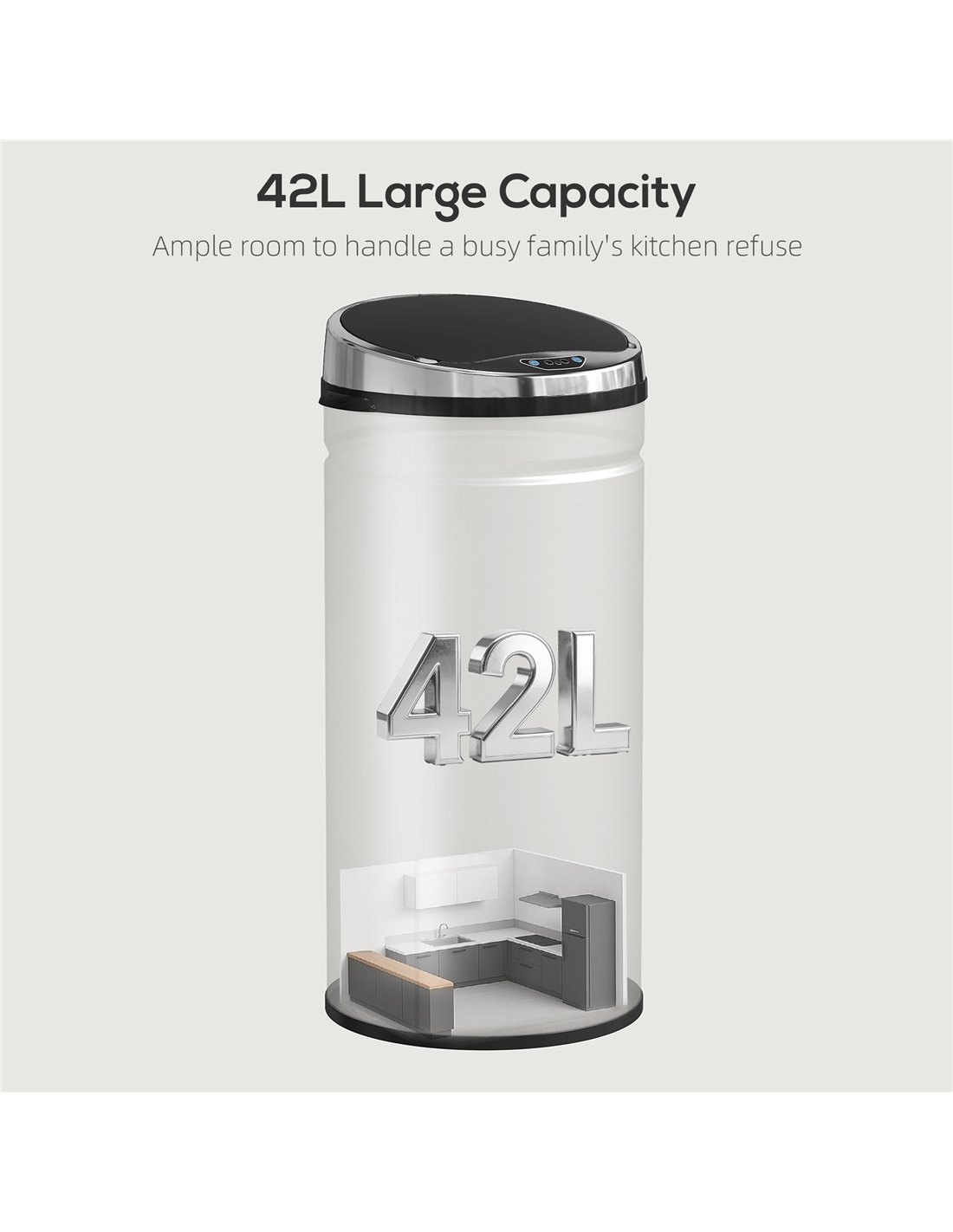 - A: The HOMCOM 42L Stainless Steel Sensor Bin has a generous 42-litre capacity, holding more waste for fewer bag changes.