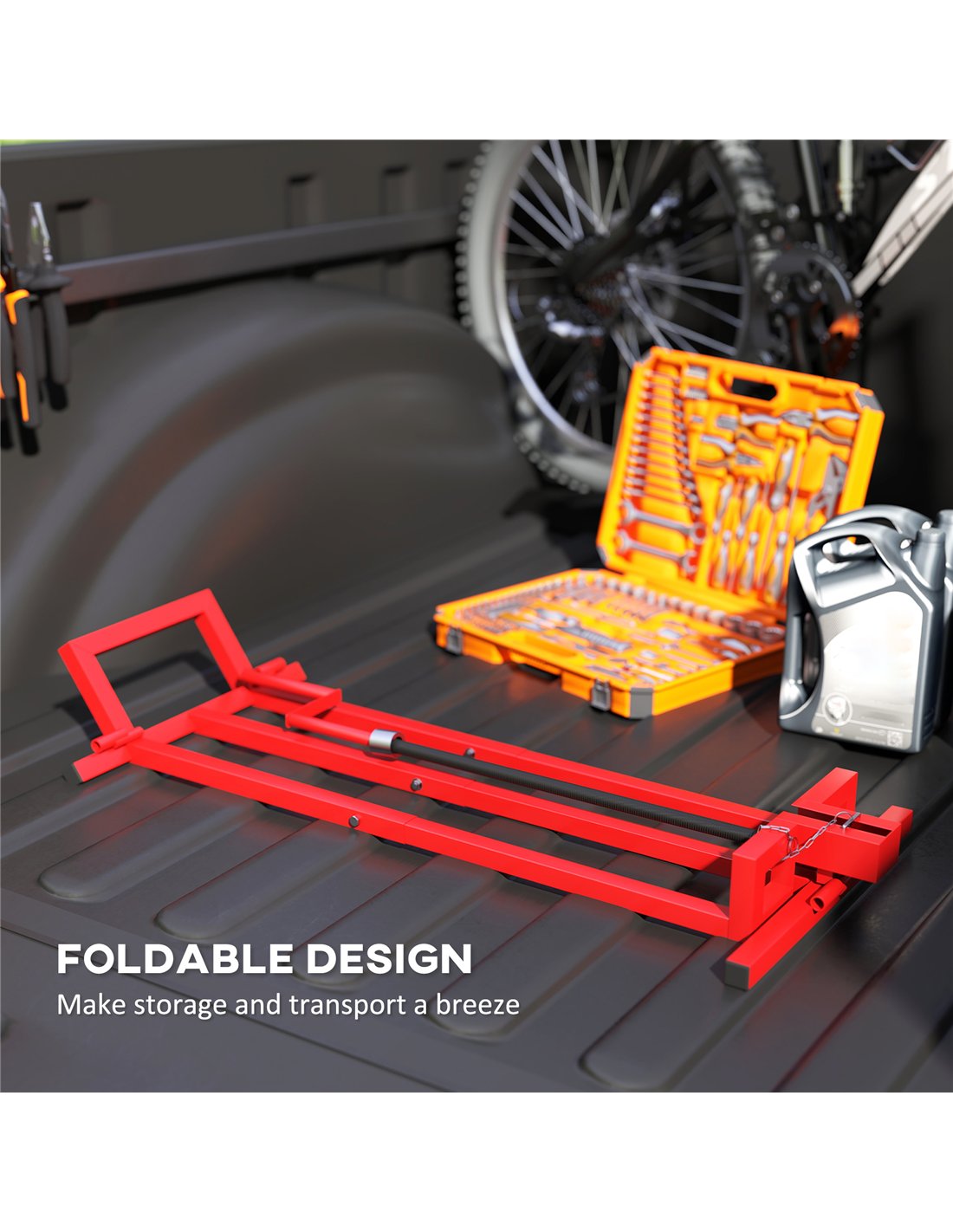 HOMCOM 400 kg Foldable Ride-On Mower Jack Lift, Adjustable Steel Lifting Device, for Lawn Mower, ATV, Red