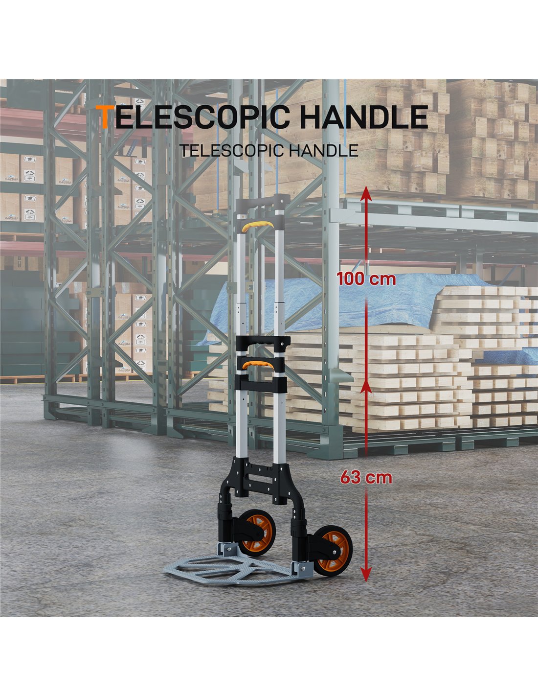 - A: The sack truck folds down compactly in seconds, making it optimal for storage in tight spaces such as garages or car boots.
