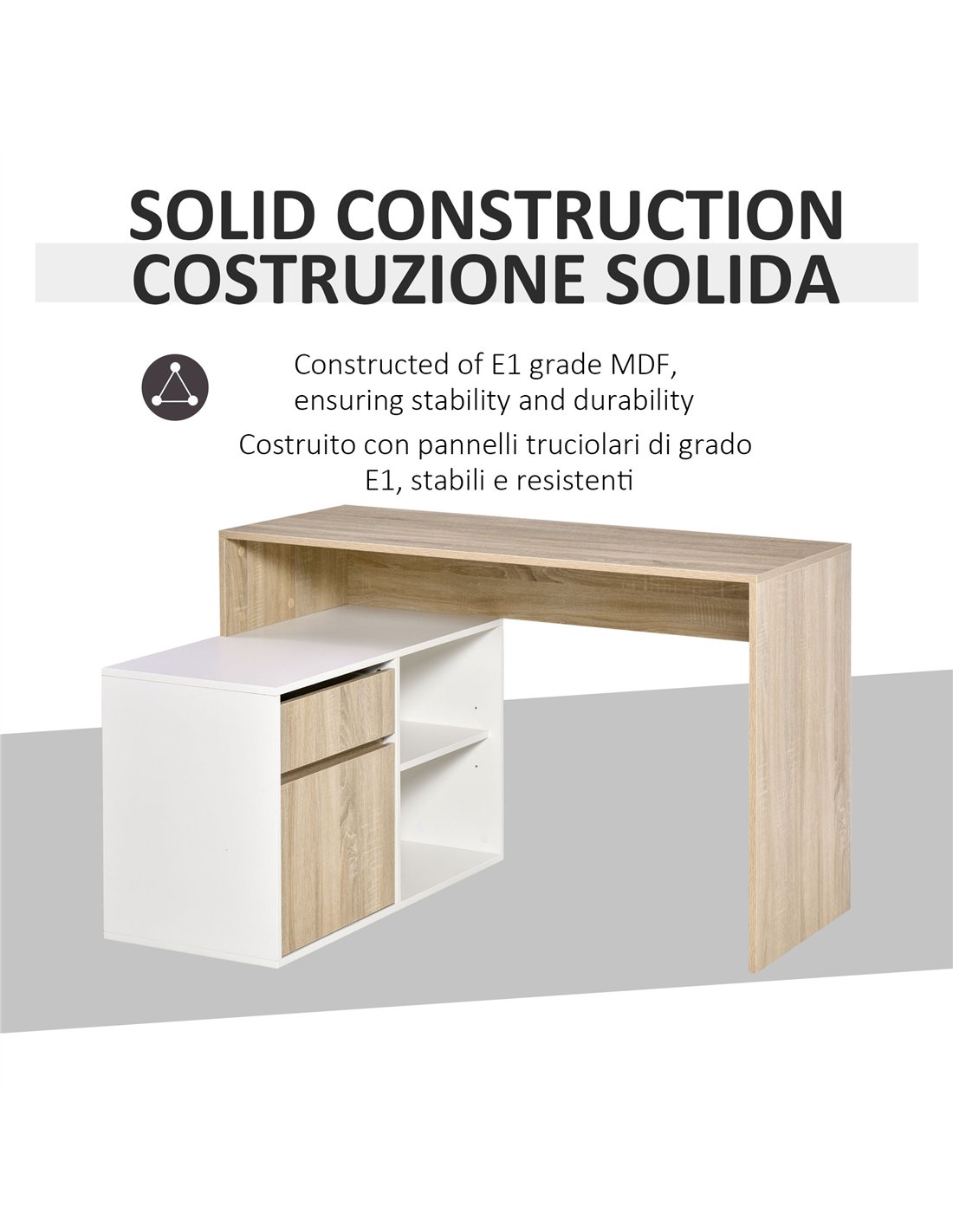 HOMCOM L-Shaped Desk, Corner Computer Desk with Storage Drawer, Adjustable Shelf, Cabinet for Home Office and Study, 120 x 92 x 75cm, Oak and White
