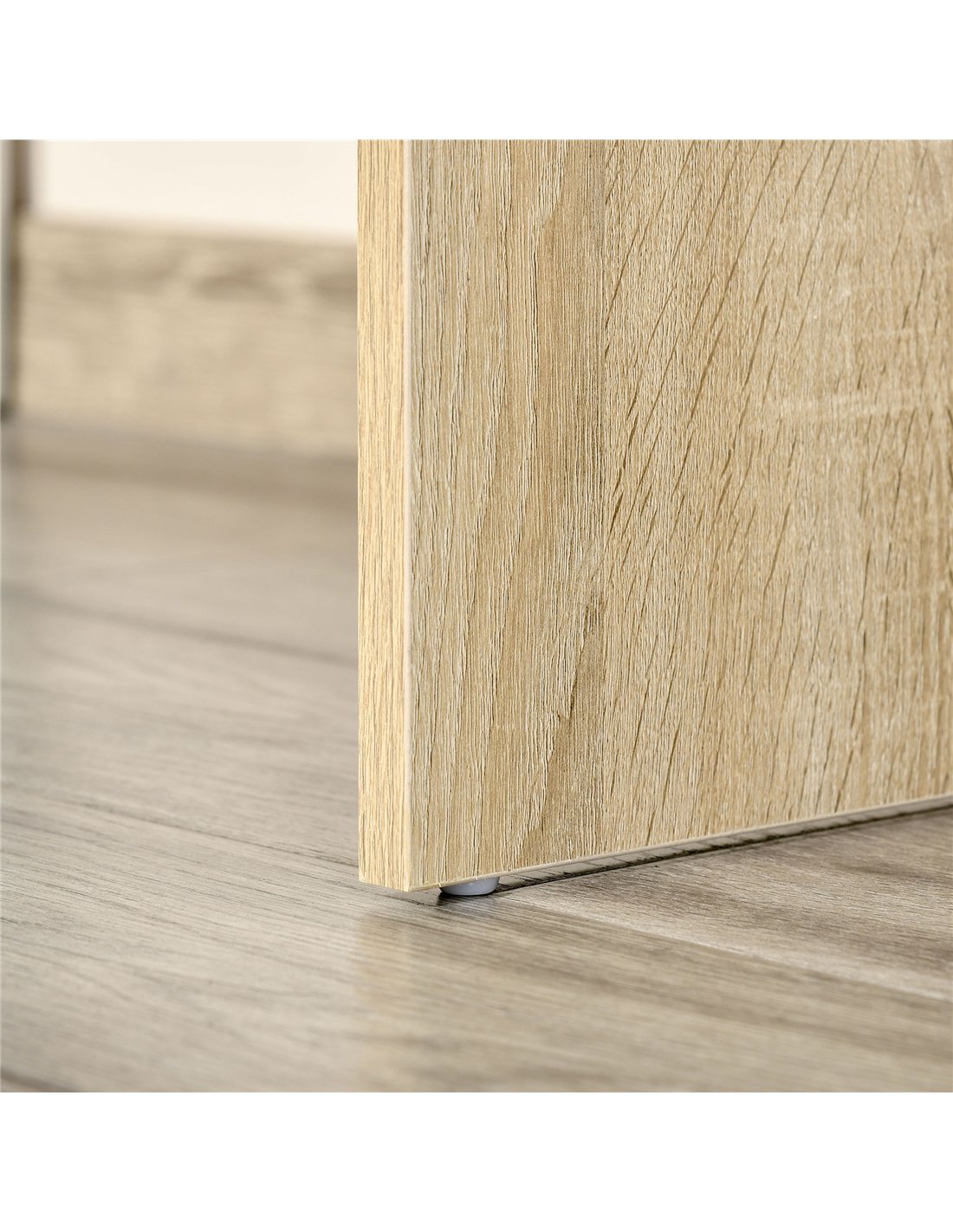 Optimise your UK home office or study with the HOMCOM L-Shaped Corner Computer Desk. This 120 x 92 x 75cm desk offers an efficient space-saving solution, specifically designed for compact areas. It features integrated storage, including a spacious drawer, an adjustable shelf, and a functional cabinet, keeping your work essentials organised and within reach. Crafted from durable E1 grade particle board, this desk ensures long-term sturdiness and reliability. It supports an overall weight capacity of 60kg. The easy-to-clean oak and white wood-grain surface provides a contemporary aesthetic, blending seamlessly into modern interiors. This design maximises utility, providing ample surface room for your computer and documents, creating a productive and tidy environment in any corner of your room.