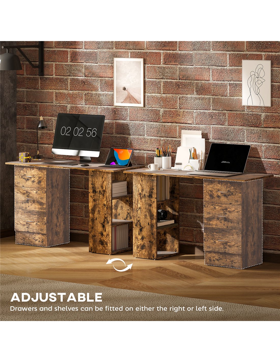 - A: Yes, you install the three drawers and three open shelves on either the right or left side of the desk, allowing customisation to your workspace.