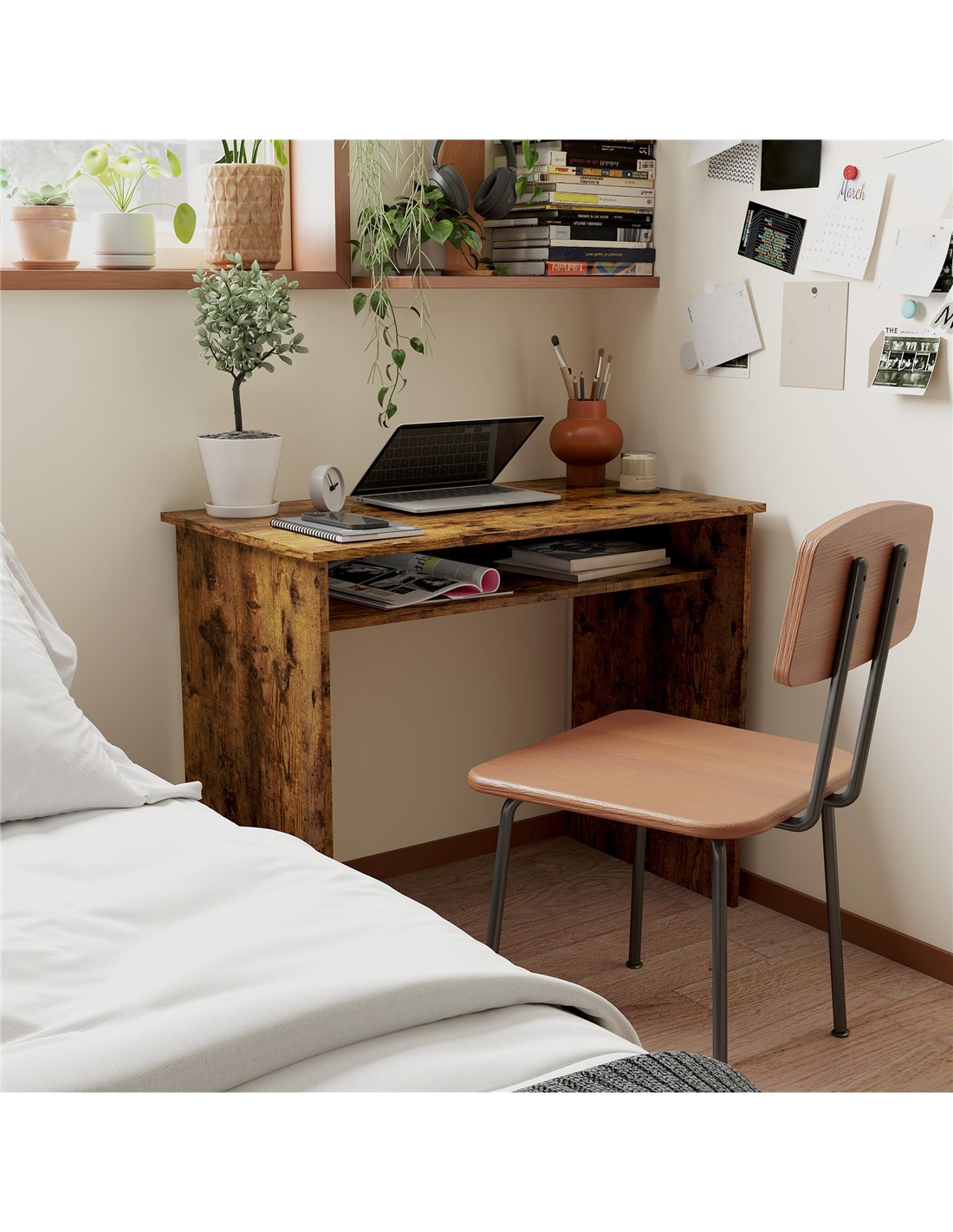 HOMCOM Boxy Work Desk, with Shelf - Wood-Effect