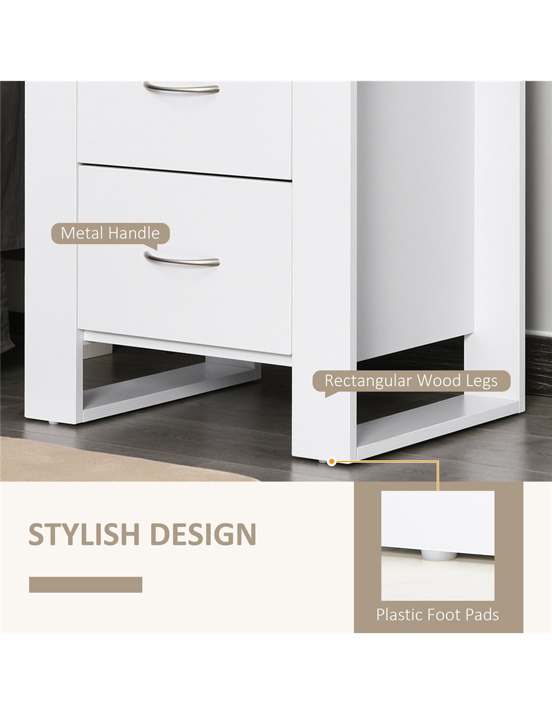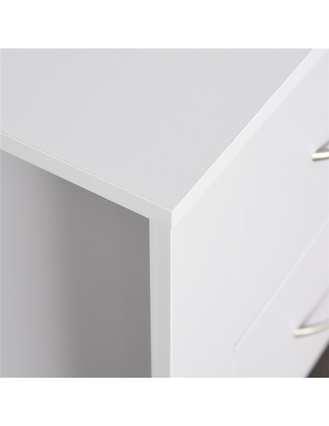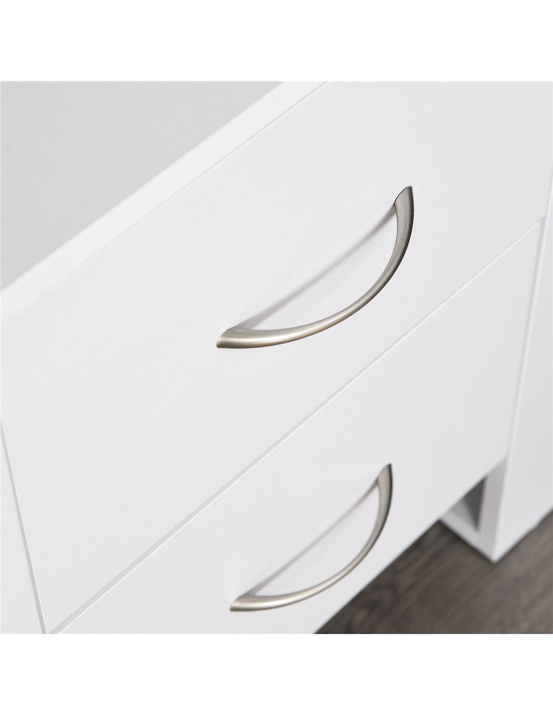 - Sleek silver-tone handles for easy opening and closing of the drawers