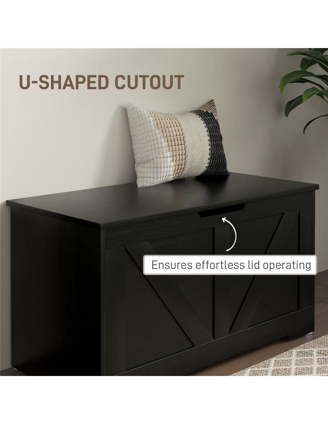HOMCOM 100L Home Storage Box, with Safety Hinges - Black Wood-Effect