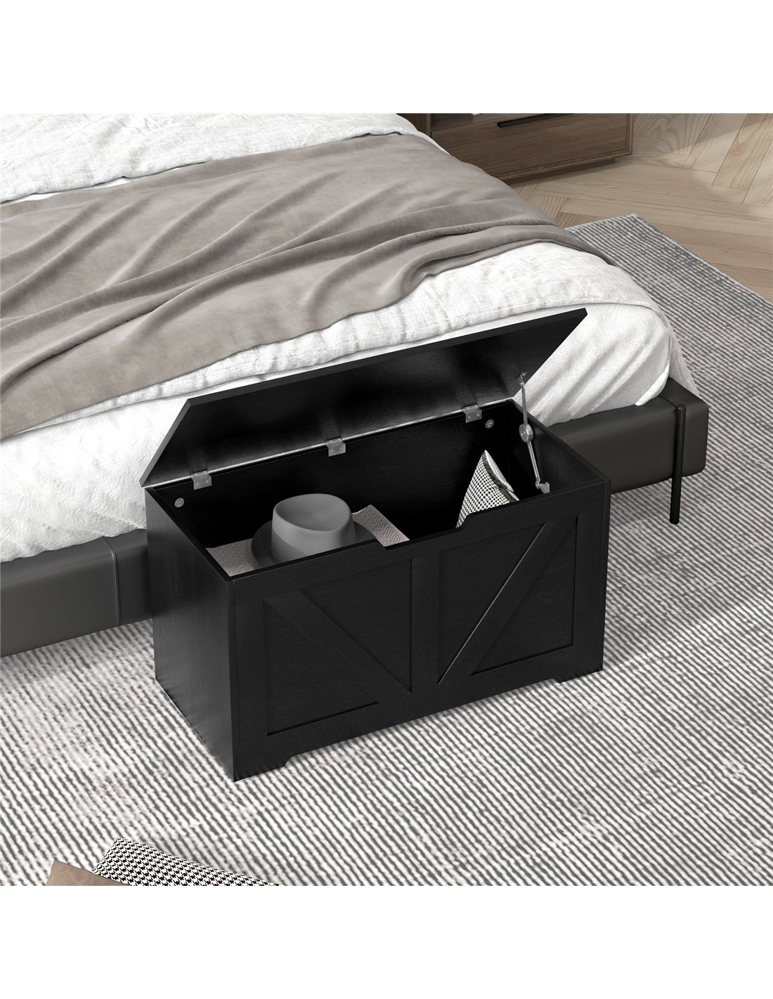 - A: The storage box features a safety hinge. This prevents the lid from slamming shut unexpectedly, protecting your fingers.