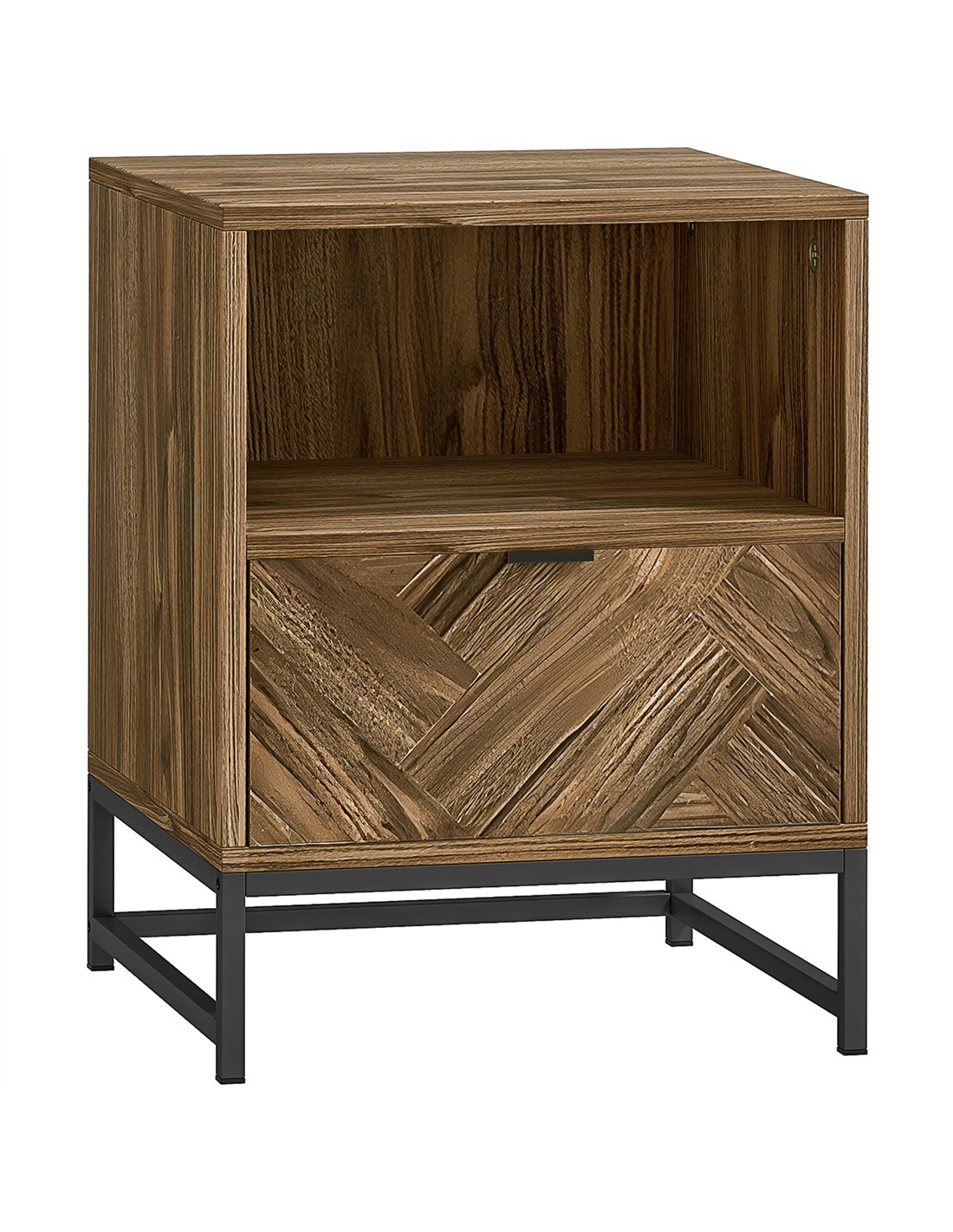 Elevate your living spaces with the HOMCOM Bedside Table, a functional and stylish addition. This versatile side end table features a convenient drawer and an accessible open shelf. It provides ample storage for essentials, from books and lamps to pens and other items. The rich brown wood effect finish pairs with a sturdy black steel frame, embodying a contemporary industrial-style design. Position this resilient table as a nightstand next to your bed or as a practical end table in your living room. Constructed from durable particle board with a protective melamine coating, this table withstands daily use. A strong metal base offers consistent support. This HOMCOM piece blends practical storage solutions with a clean aesthetic, enhancing any room in your UK home.