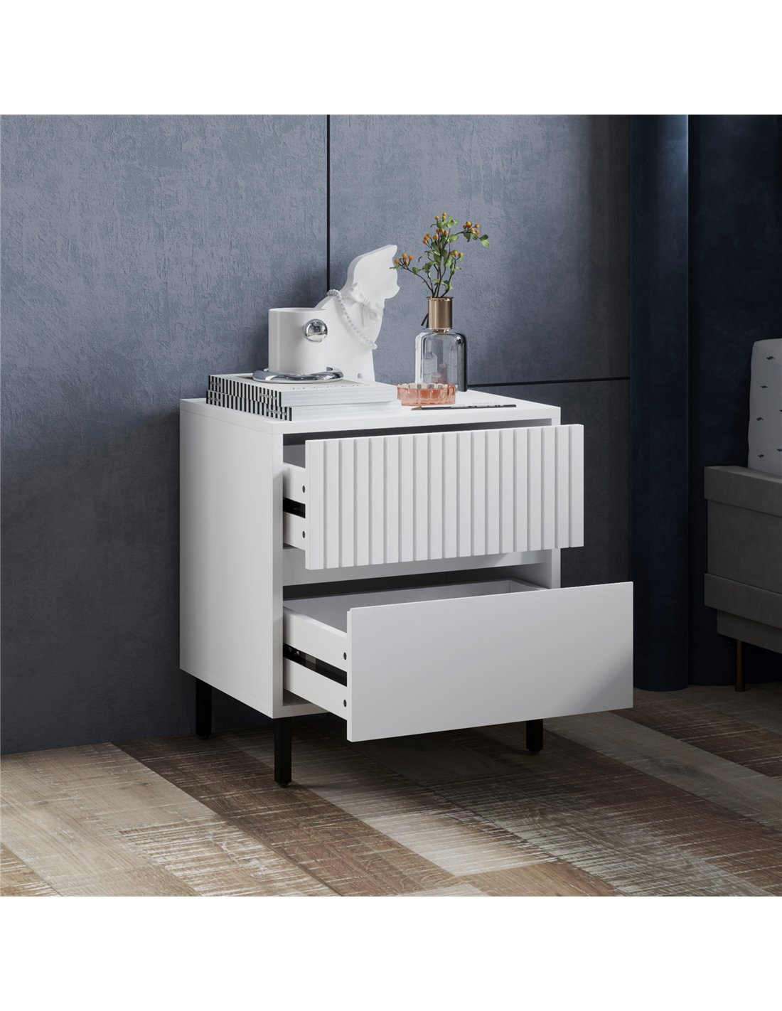 - Two drawers for keeping bed essentials in place, right next to you