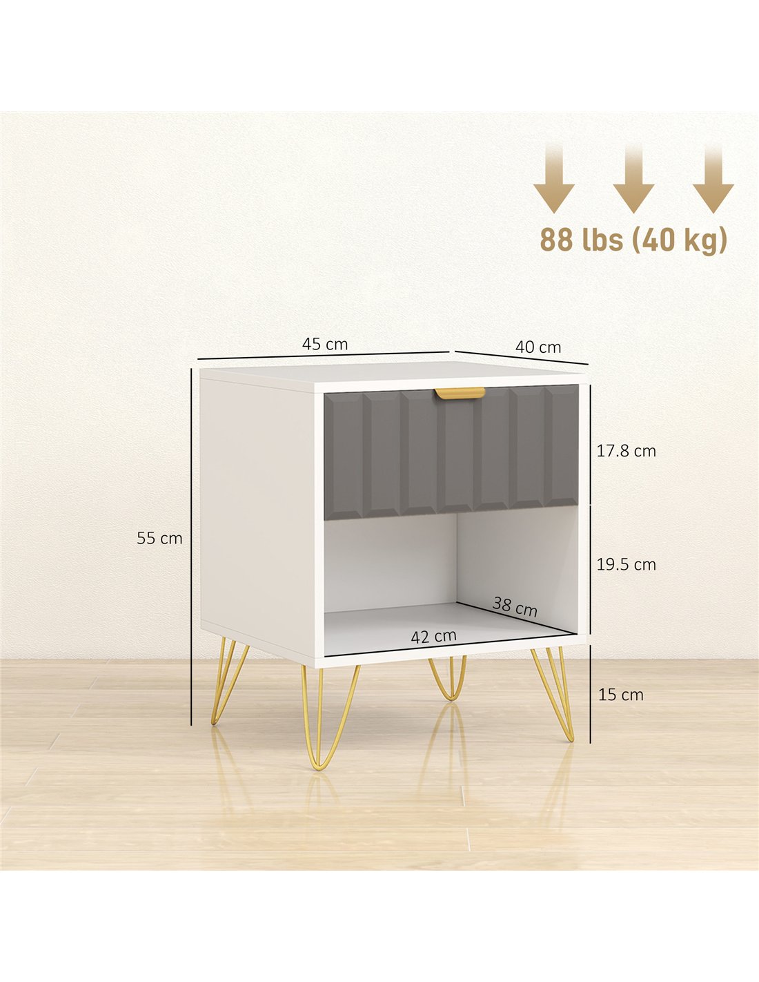 HOMCOM Bedside Table Modern Bedside Cabinet with Drawer and Open Compartment, 45 x 40 x 55, White