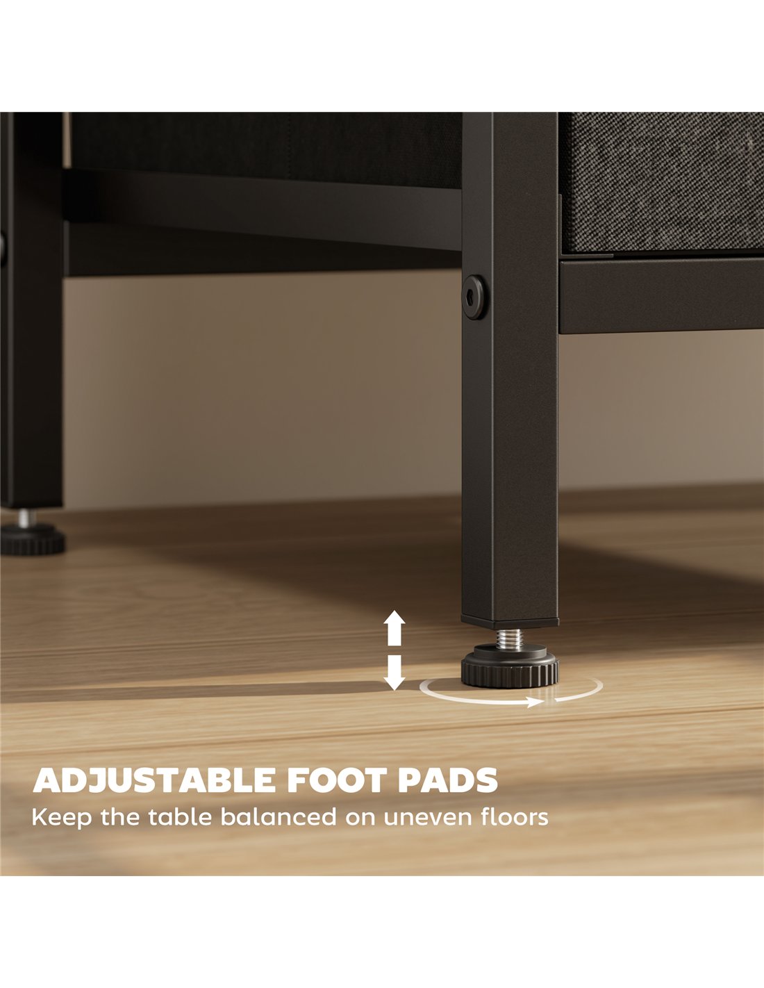- Adjustable feet keep the table stable and secure on slightly uneven floors