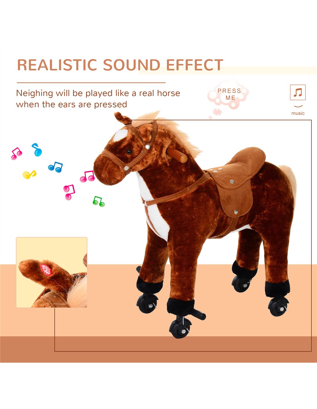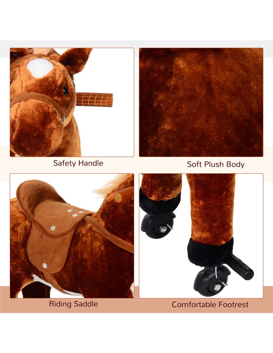 HOMCOM Plush Walking Horse Ride On Toy with Wheels and Realistic Sounds Rocking Horse for Girls Boys 2+ Years Old, 50cm Tall, Brown