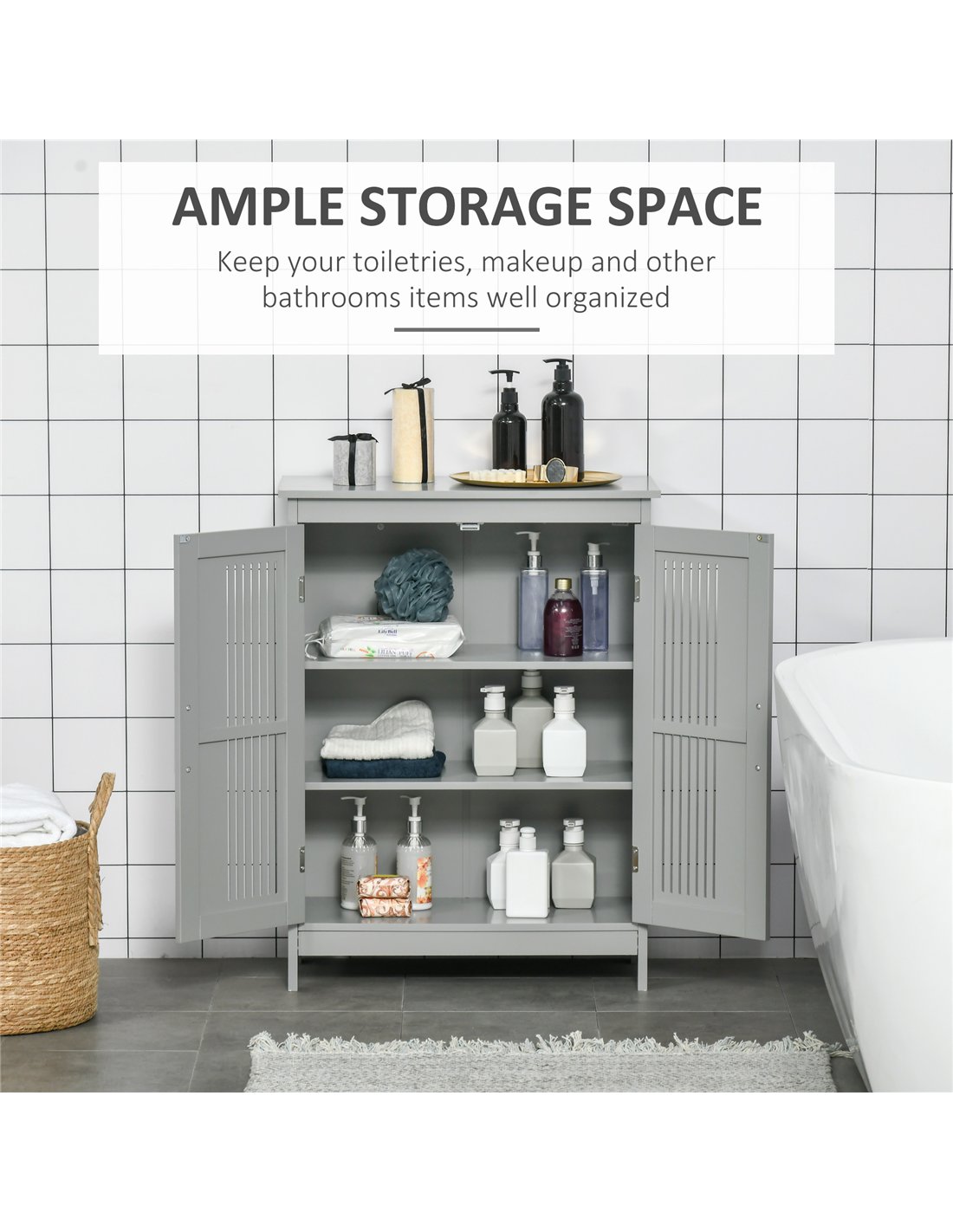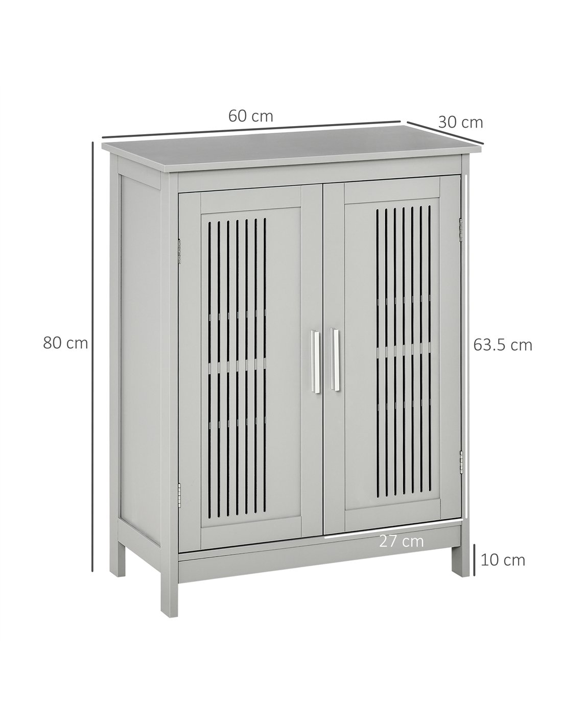 Optimise your home's storage with the kleankin Modern Bathroom Floor Cabinet in Grey. This robust cabinet, constructed from durable MDF, delivers practical organisation for any UK household. Its sleek, contemporary design enhances bathrooms, living rooms, and kitchens alike. You receive three tiers of internal shelving, providing ample space for towels, toiletries, or other essentials. The cabinet’s painted surface simplifies cleaning and maintenance, ensuring a lasting, fresh appearance. An integrated anti-tip strap guarantees enhanced safety and stability for your family. This versatile grey floor cabinet measures 60W x 30D x 80H cm, offering significant storage capacity while maintaining a compact footprint. It reduces clutter and supports organised living across your home.