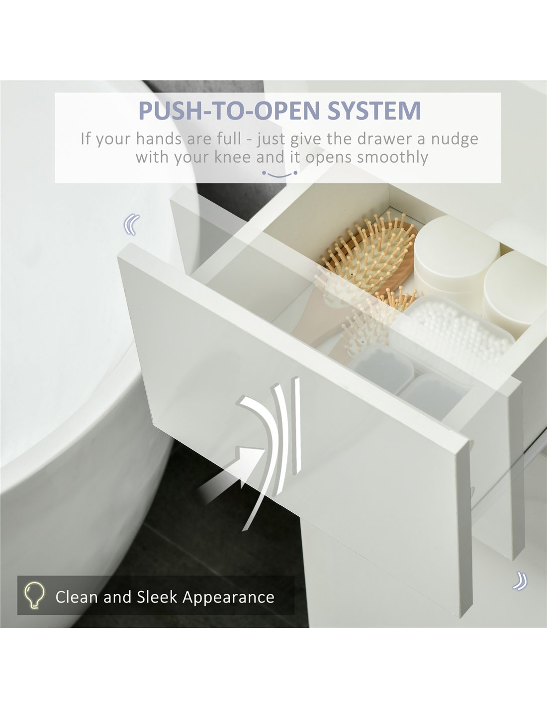 kleankin Luxury Tall Bathroom Cabinet with High Gloss Panel, Sleek White Bathroom Cabinet with Push-to-Open Door, White