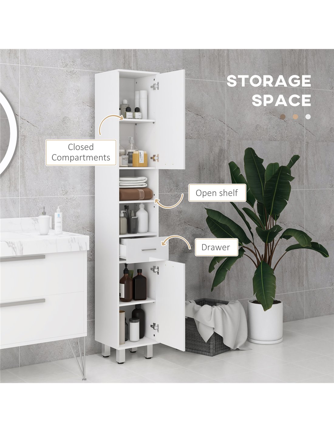 kleankin 71" Tall Slim Bathroom Storage Cabinet, Tall Narrow Cupboard with Drawer, Open Shelves, 2 Doors Cabinets and Adjustable Shelves for Kitchen, Hallway, Living Room, High Gloss White