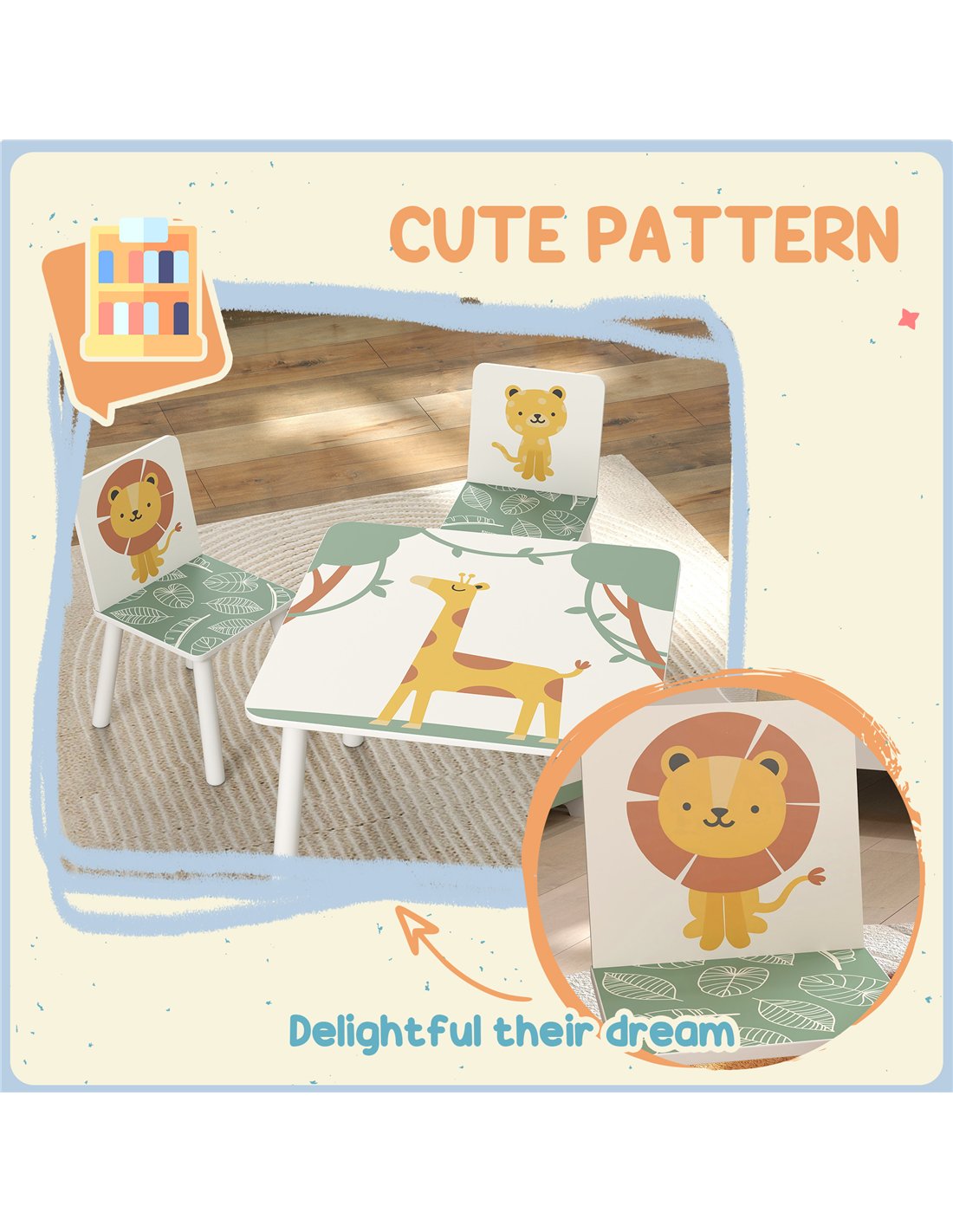 - A: This AIYAPLAY 3-piece toddler table and chair set is designed for children aged 3 years and up. The recommended age range is 3-8 years.