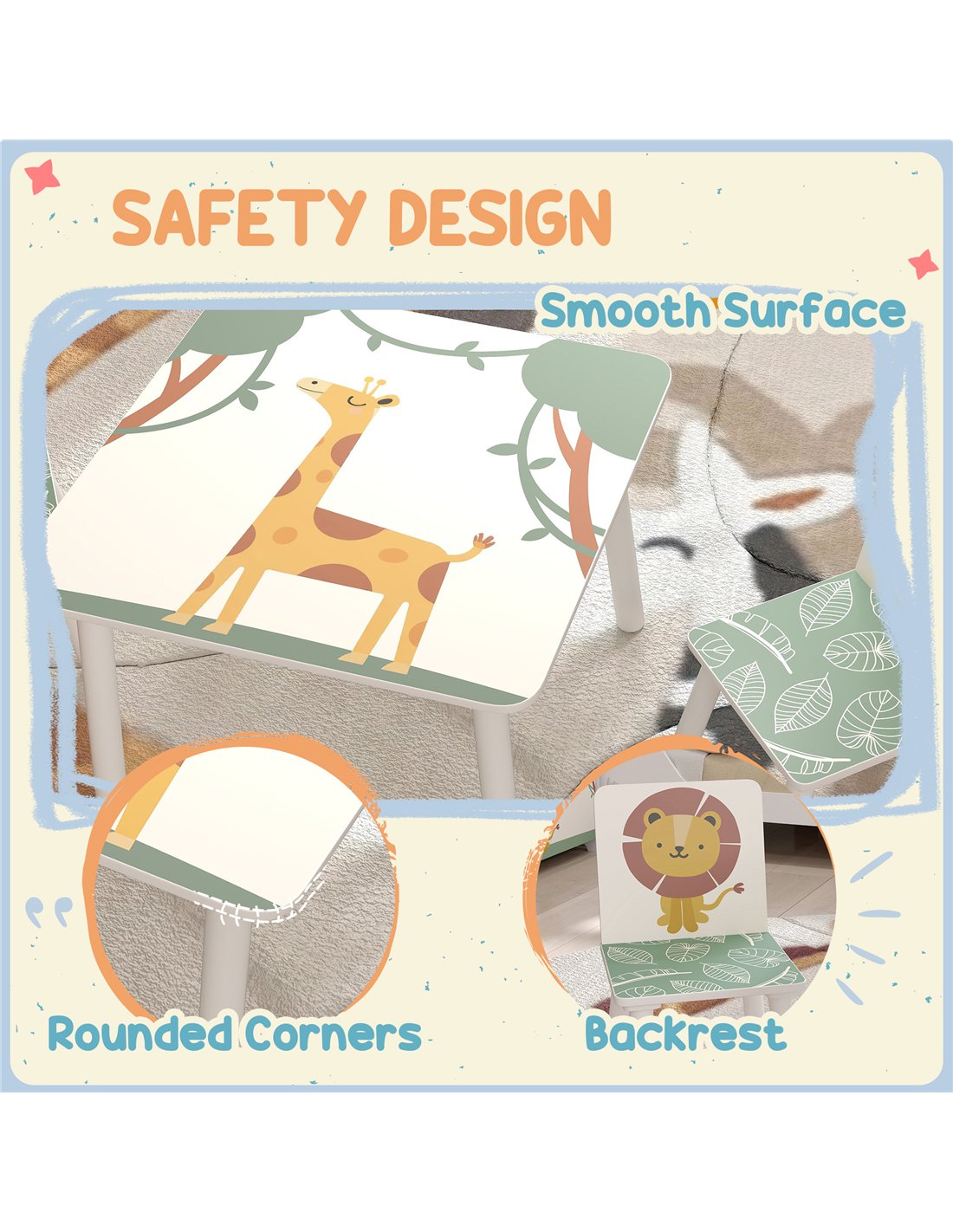 - Kid-sized height for comfortable sitting and activities