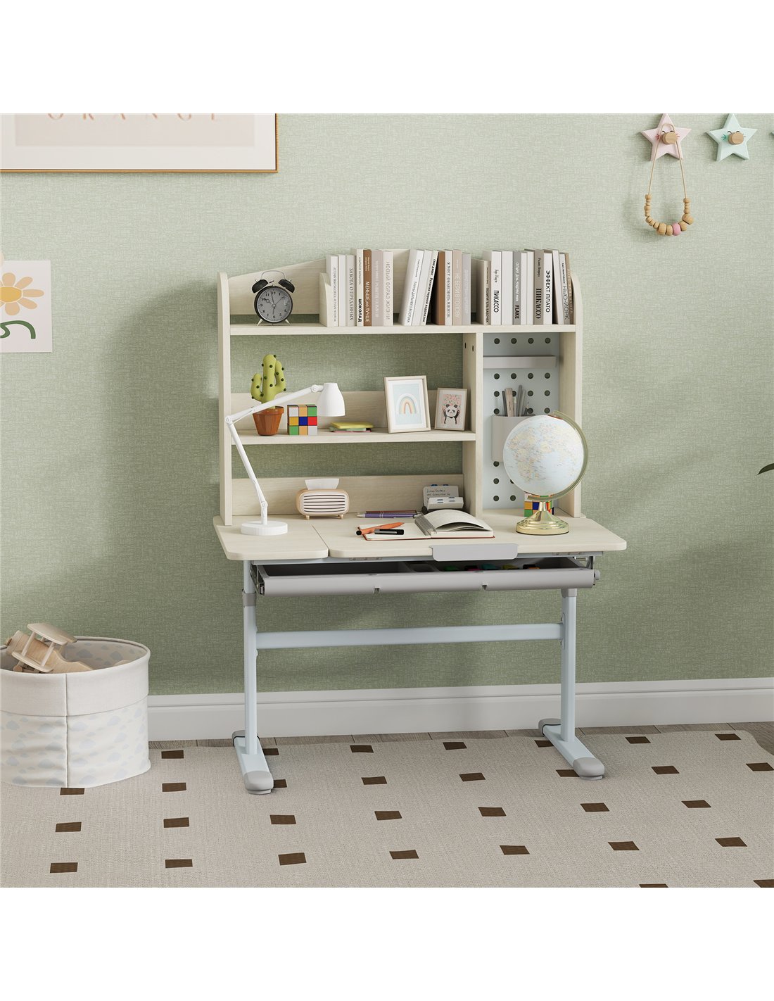 AIYAPLAY Kids Desk Height Adjustable with Tilt-Desktop, Hutch, Drawer, Storage Shelf, Pegboard, for 3-12 Years Old, Natural