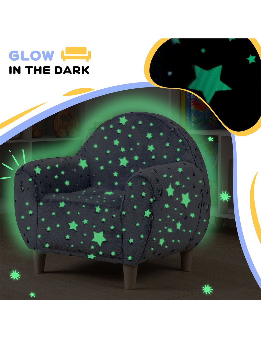 AIYAPLAY Kids Armchair, Glow in the Dark Chair with Star Design for Bedroom, Playroom, Kids Room, Grey