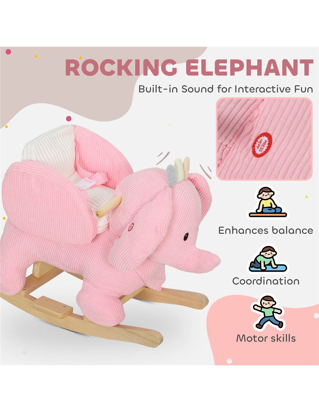 AIYAPLAY Kids Rocking Horse, Baby Ride on Elephant Rocker with Safety Belt and Sound for Toddlers 18 to 36 Months, Pink