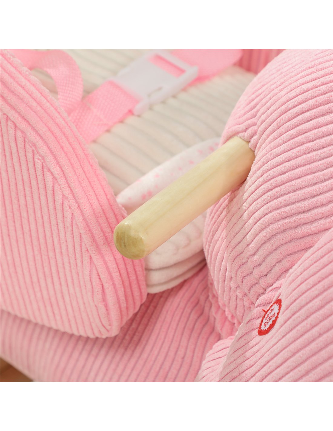 The AIYAPLAY Kids Rocking Horse brings engaging play to toddlers aged 18 to 36 months. This pink elephant rocker features charming elephant sounds, sparking your child's imagination during playtime. Crafted with soft plush fabric and PP cotton filling, it provides a comfortable and inviting seat. Your child remains secure with a three-point safety belt. A stable base, wide seat (20L x 20W cm), and easy-grip handles ensure balance and stability as your little one rocks. Standing at 50H x 65L x 35W cm, with a seat height of 33H cm from the ground, this rocker supports a maximum load of 25 kg. It adheres to EN71-1-2-3 safety standards, ensuring a trustworthy and enjoyable experience. This delightful toy helps banish boredom and provides endless entertainment for young children.