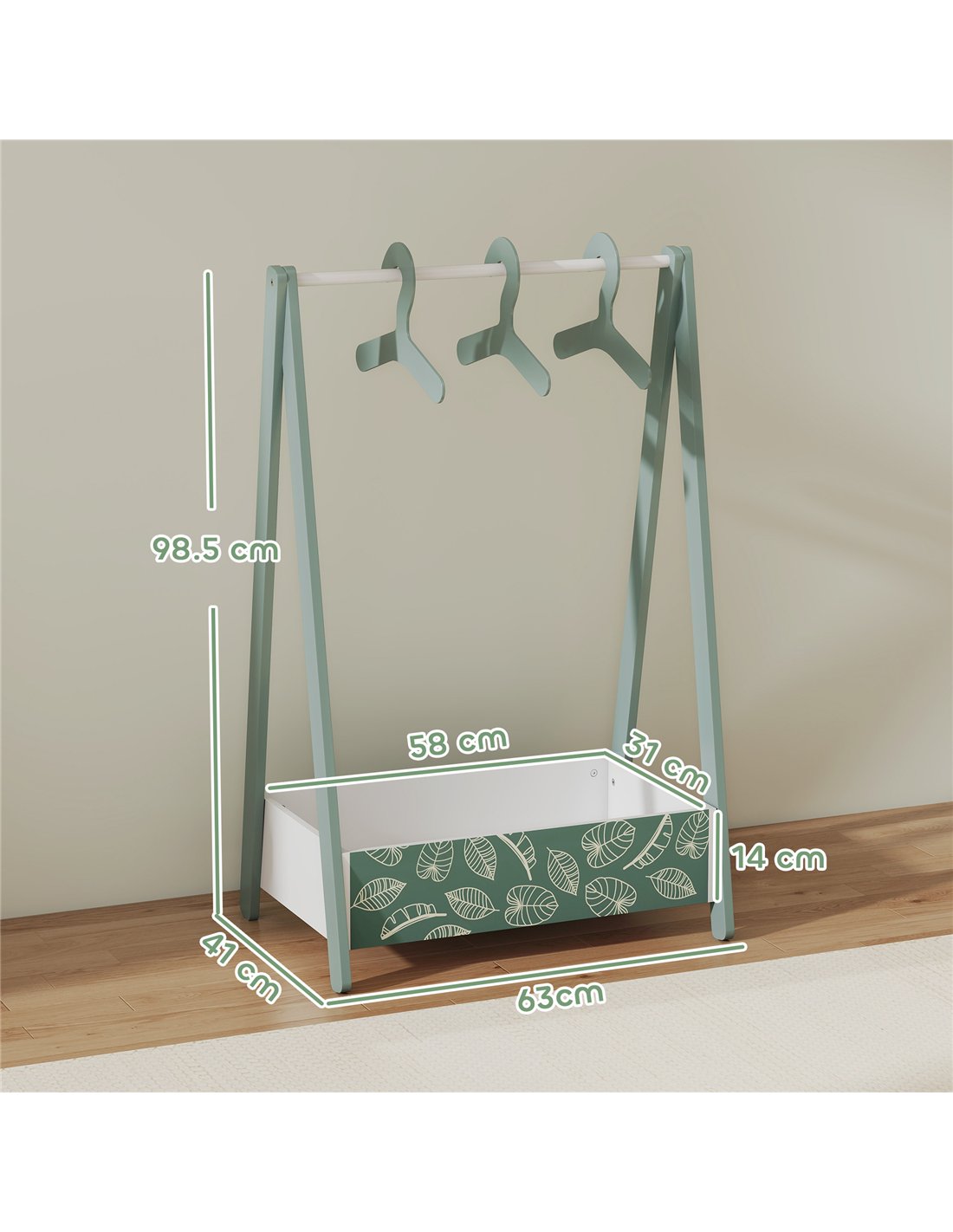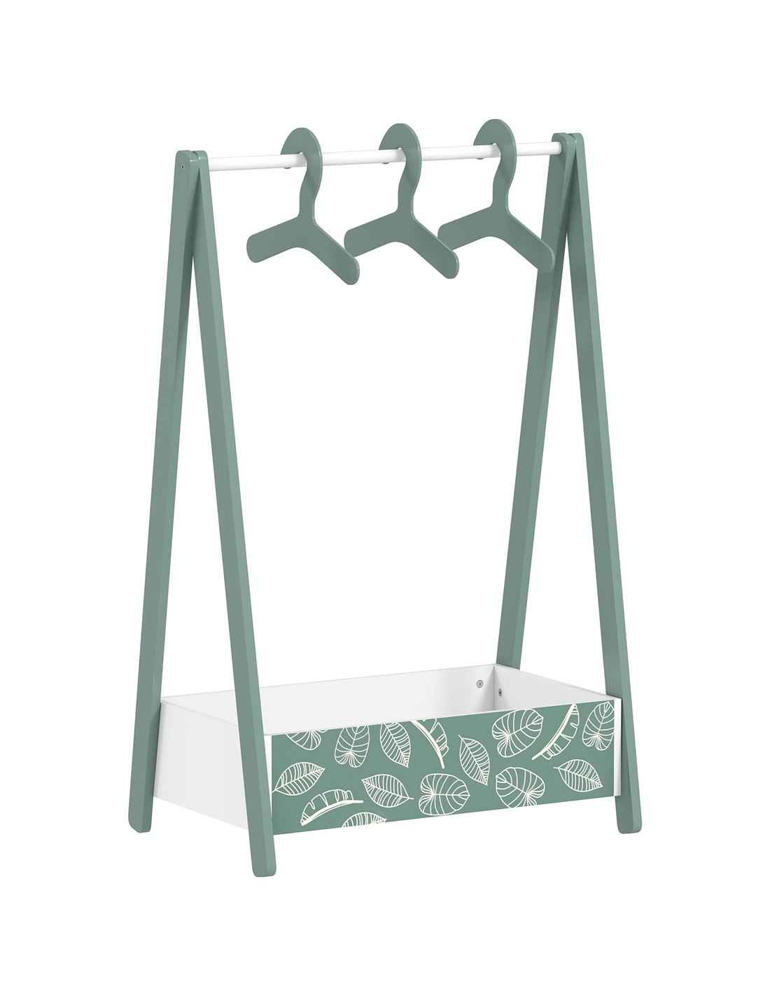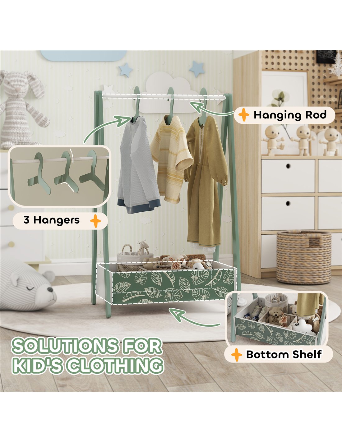 AIYAPLAY Baby Clothing Rack with Hangers, Storage Shelf for Bedroom, Leaf Theme, for Ages 3-6, Green