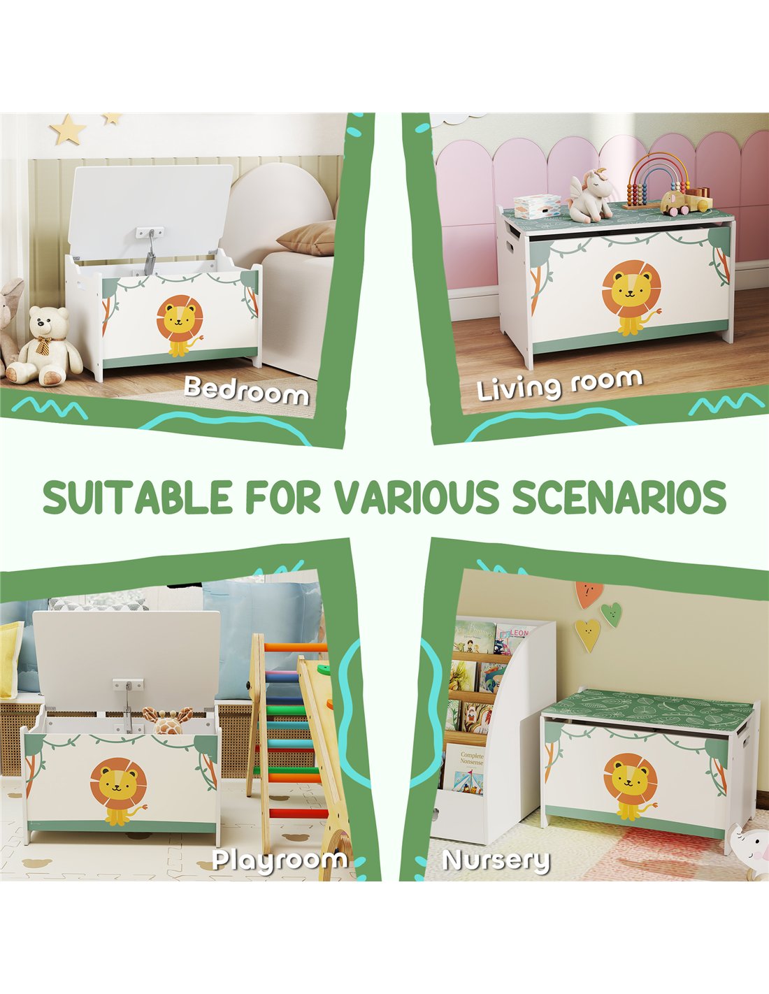 - A: Yes, it includes safety hinges to prevent the lid from slamming shut, protecting little fingers. It meets safety standard EN71-1-2-3 and is suitable for children aged 3-8 years.