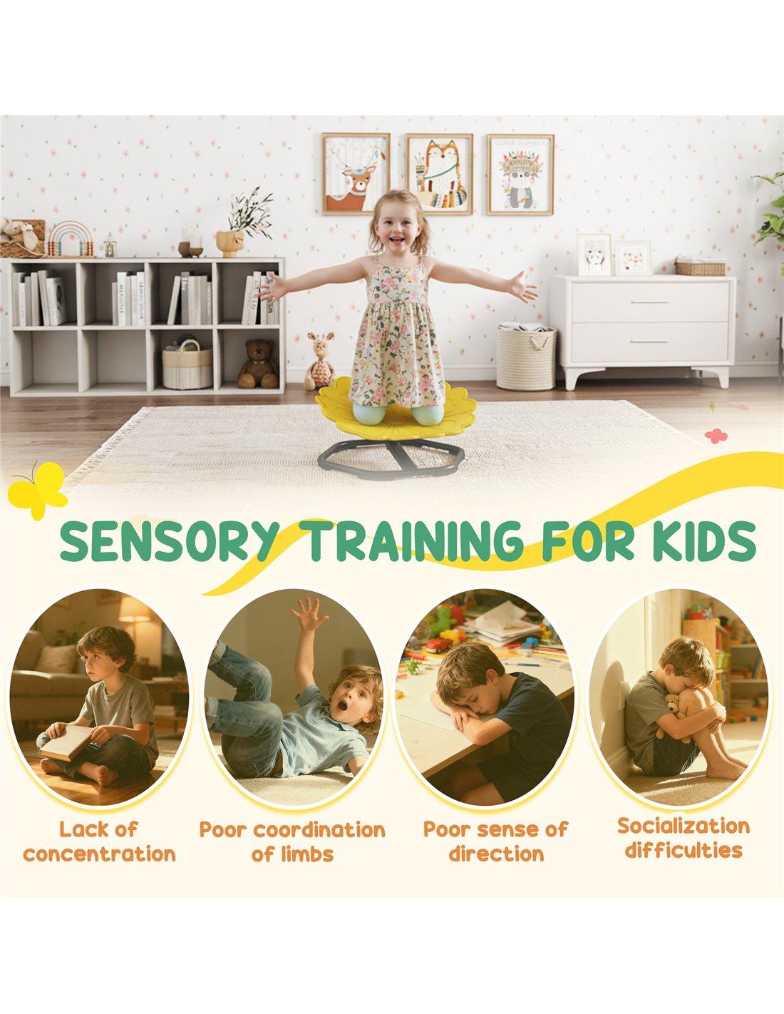 AIYAPLAY Flower-Shaped Sensory Spinning Chair with Non-Slip Base for Balance/Coordination, Yellow