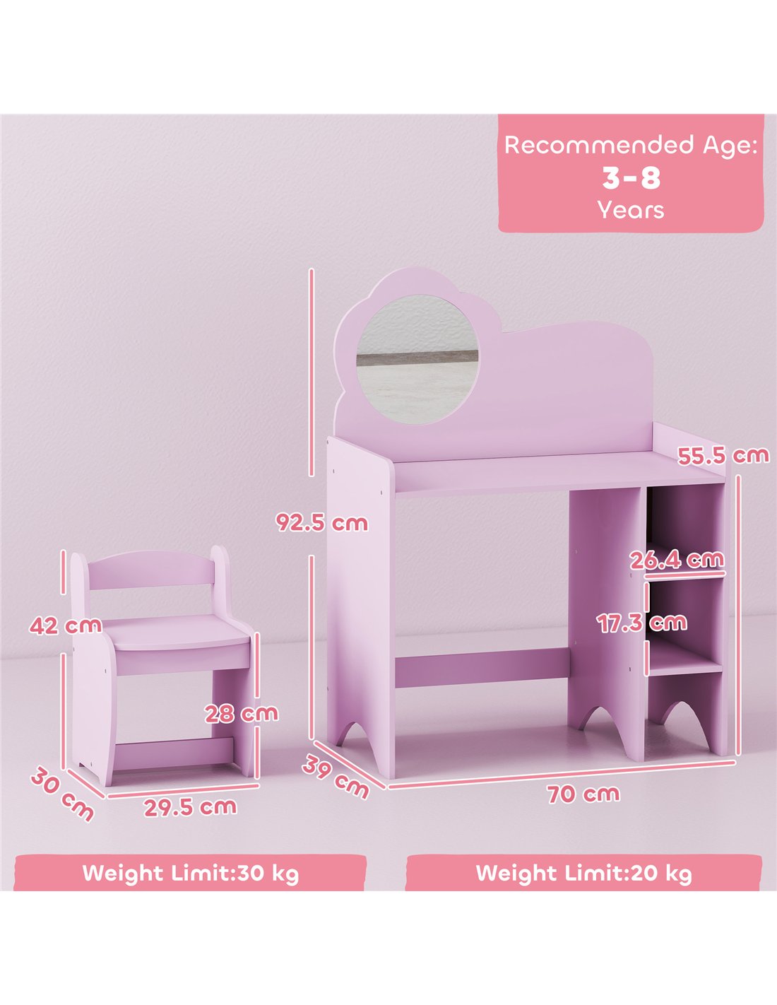 AIYAPLAY Kids Dressing Table with Mirror, Stool, Kids Vanity Table with Shelves, for Ages 3-8 Years, Purple