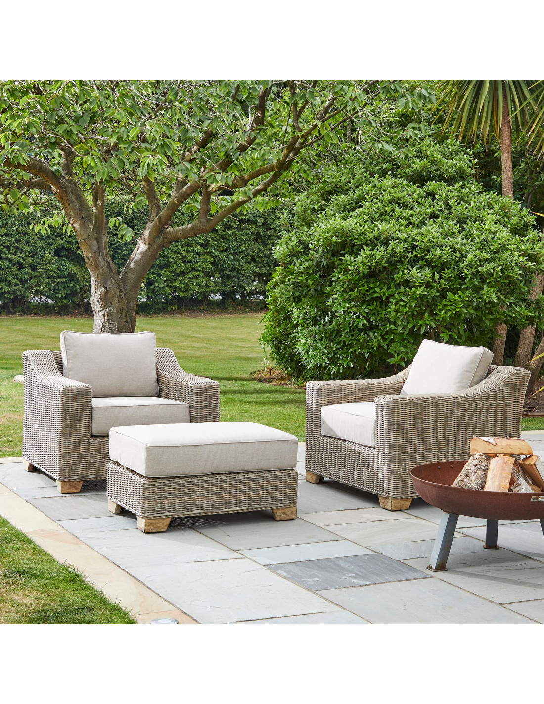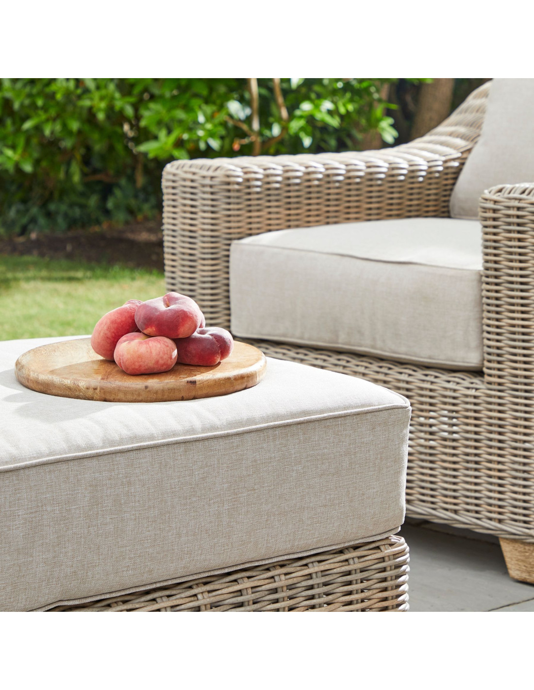 Upgrade your outdoor lounging experience with this stunning wicker footstool. It features a premium 5mm half round HDPE weave that looks exactly like natural rattan but handles the British weather like a pro. Built on a lightweight aluminium frame, it is super easy to move around your patio whenever you need a change of scenery.