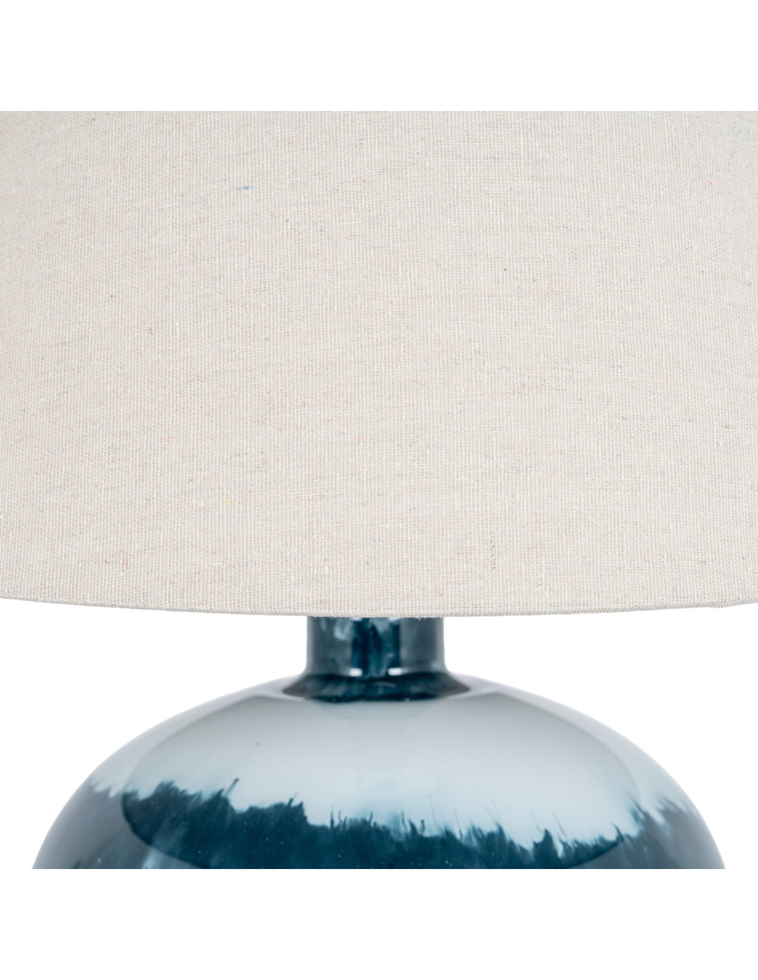 A beautiful natural linen shade sits atop, diffusing a soft inviting glow. It creates a warm sophisticated ambiance, ideal for unwinding after a long day or for a calm start to your morning. The linen adds a lovely tactile contrast complementing the lamps substantial base.