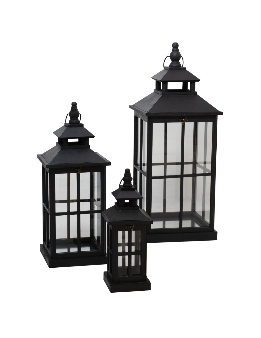 Hill Interiors Set Of 3 Black Window Style Lanterns With Open Top 22900