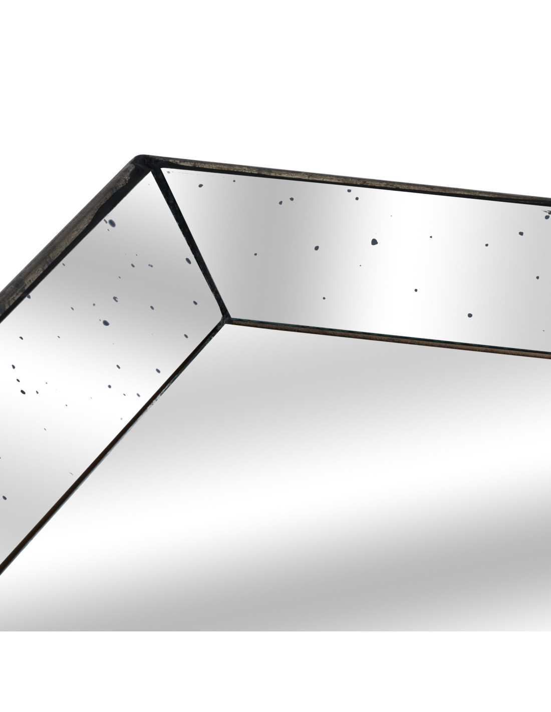 Picture this: a stunning square tray where classic antique metallic finishes meet beautifully distressed mirror. Each one is a distinctive piece, its weathered surface subtly playing with light, creating a serene, inviting glow. The sturdy yet elegant wooden frame holds it all together, adding a refined boundary to its charm.