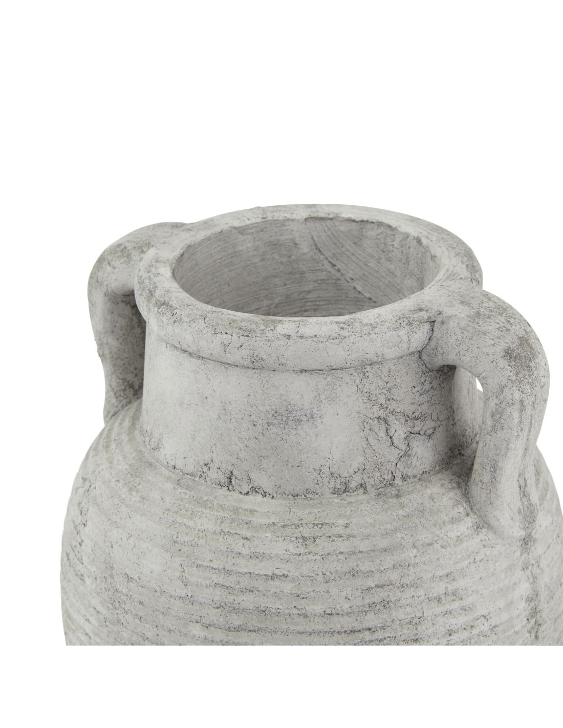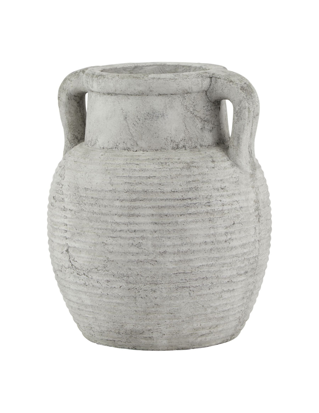 Feel the authentic ribbed texture see the weathered grey finish. Each detail evokes classic Greek vessels yet its compact form fits seamlessly into contemporary settings. It's a genuine showstopper whether standing solo or thoughtfully paired with other urns and vessels.