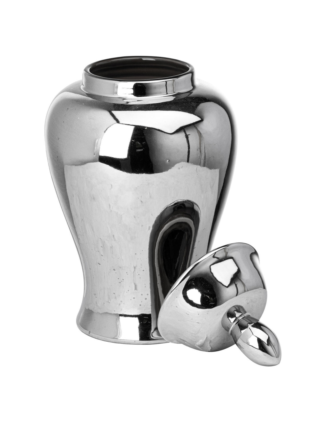 Each jar is individually hand-finished ensuring exceptional quality and a flawless versatile chrome glaze. Picture it catching the light adding a sophisticated focal point to your living space dining area or hallway. Its presence alone infuses modern elegance.