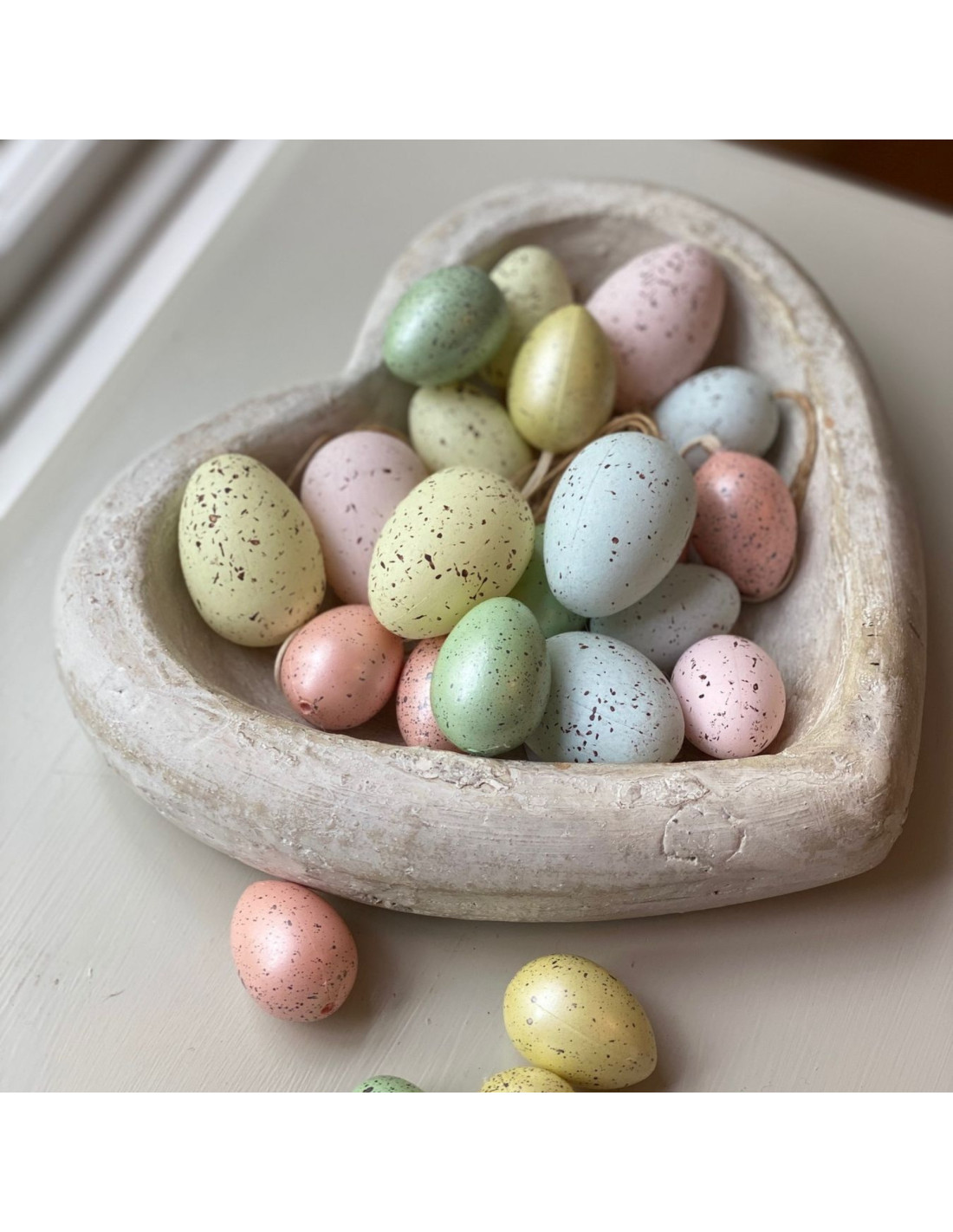 Envision this heart dish creating striking displays. It complements natural elements like decorative artichokes adding rich texture. Place it near an antique white vase to enhance its weathered charm. Achieve harmony by pairing it with other stone pieces or introduce a round ceramic lantern for a balanced visual. It looks particularly stunning with a matt white ceramic vase for a contemporary twist.