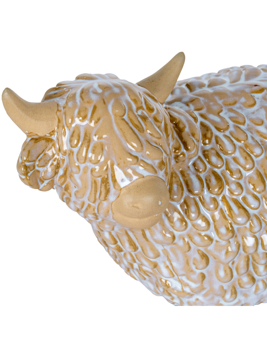 Everyone loves a Highland cow. This beautiful ceramic brings that universal charm right into your living space giving character and warmth. A charming addition for any UK home.