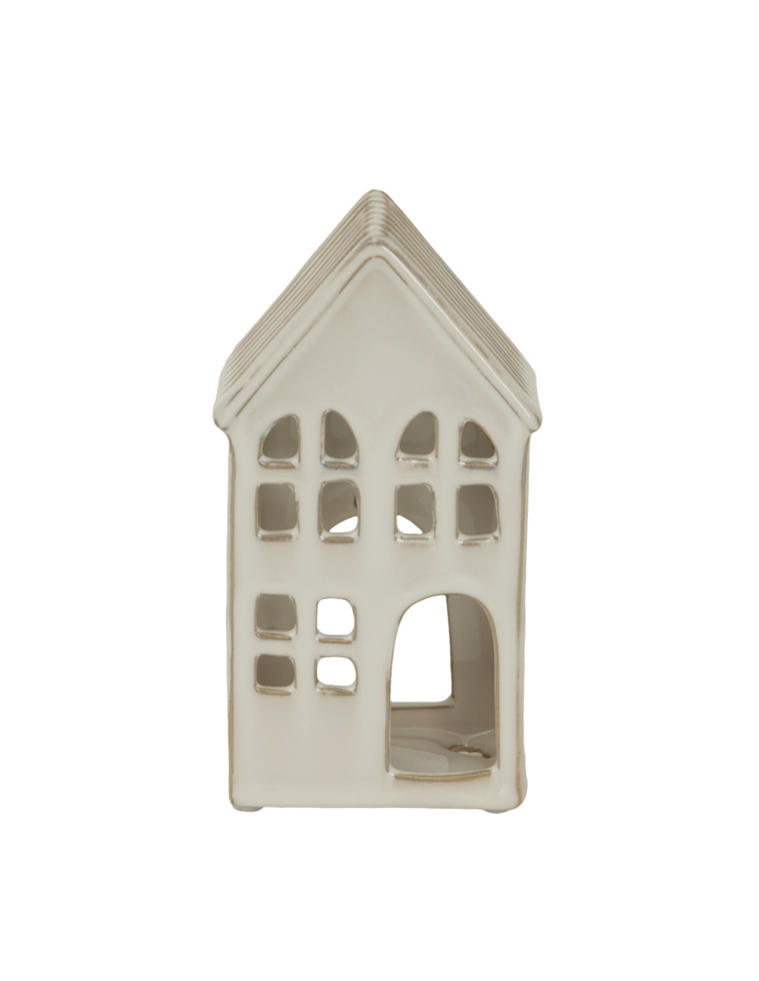 Part of a distinguished collection celebrating architectural forms with sophisticated simplicity, this ceramic piece is more than a tea light holder. Its crisp white finish reflects light beautifully even when unlit making it a delightful decorative element on its own. Arrange it with similar items like a White Ceramic Fir Tree or a Ceramic Standing Star to create a magical miniature winter village display that tells a visual story.