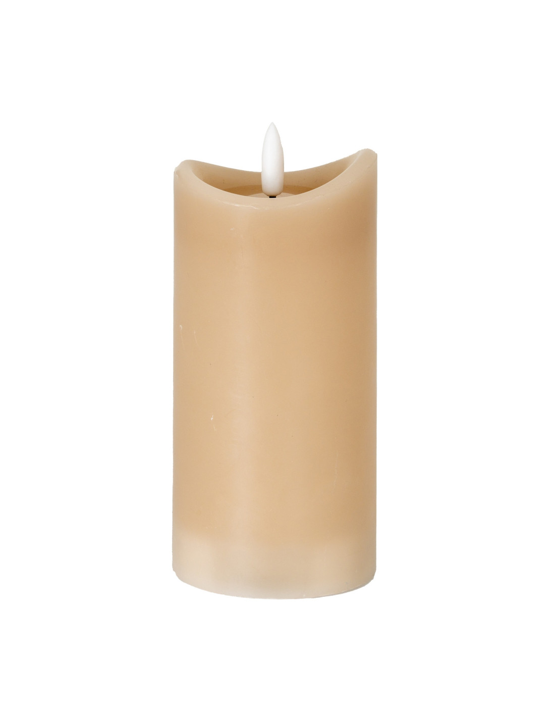 This exquisite 2.75x6 inch taupe candle offers all the tranquil charm of a traditional flame, without any of the fuss or fire risk. Expertly engineered, it showcases a stunningly authentic natural glow effect and a subtly melted wax appearance, mirroring the gentle dance of a burning wick.