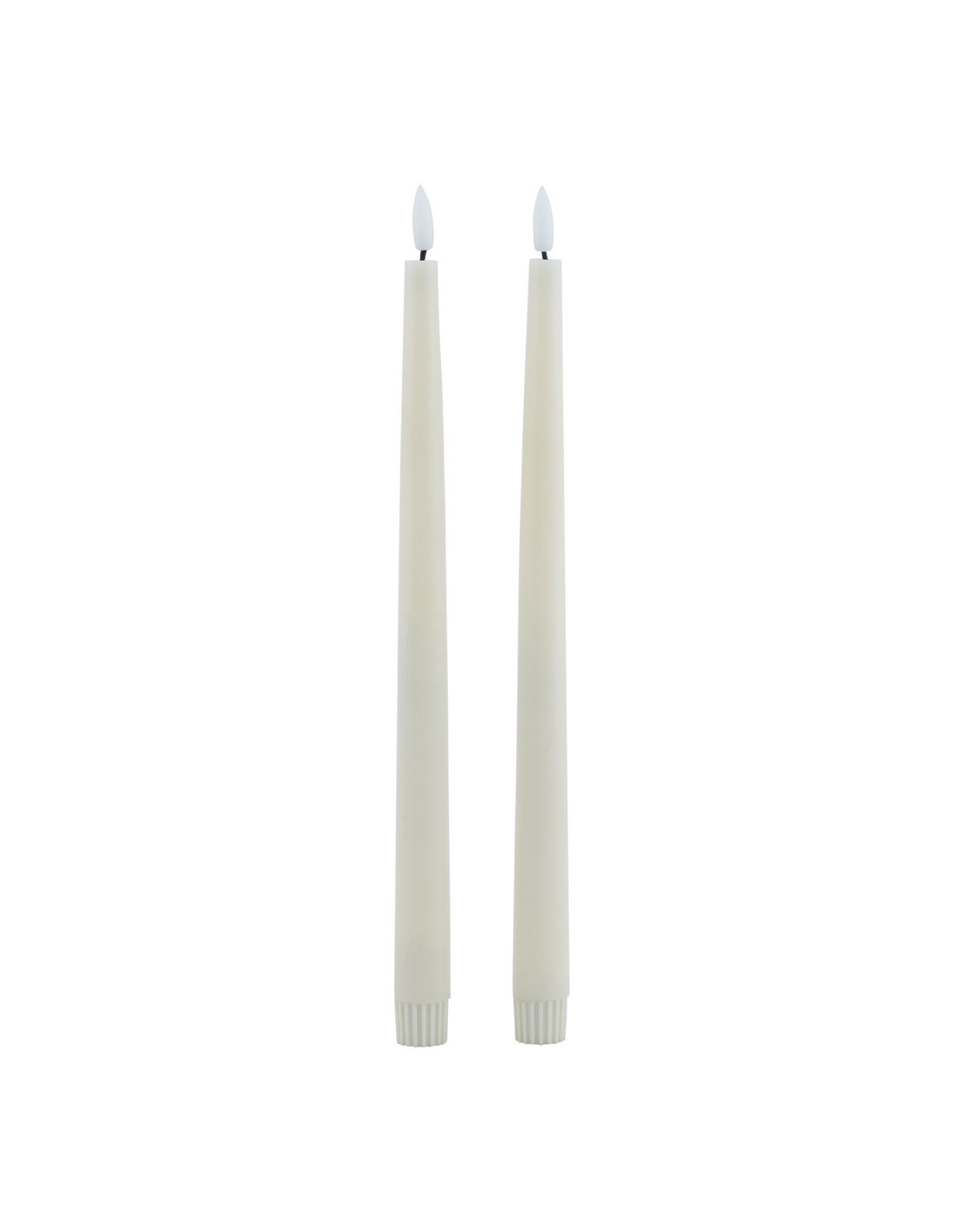 Transform your space with the captivating allure of these Luxe Collection LED wax dinner candles from Hill Interiors. This pair offers an instant upgrade bringing warmth and a calming taupe finish to any setting. Picture them gracing your dining table a mantelpiece or a window display their substantial 25cm height making a confident statement.